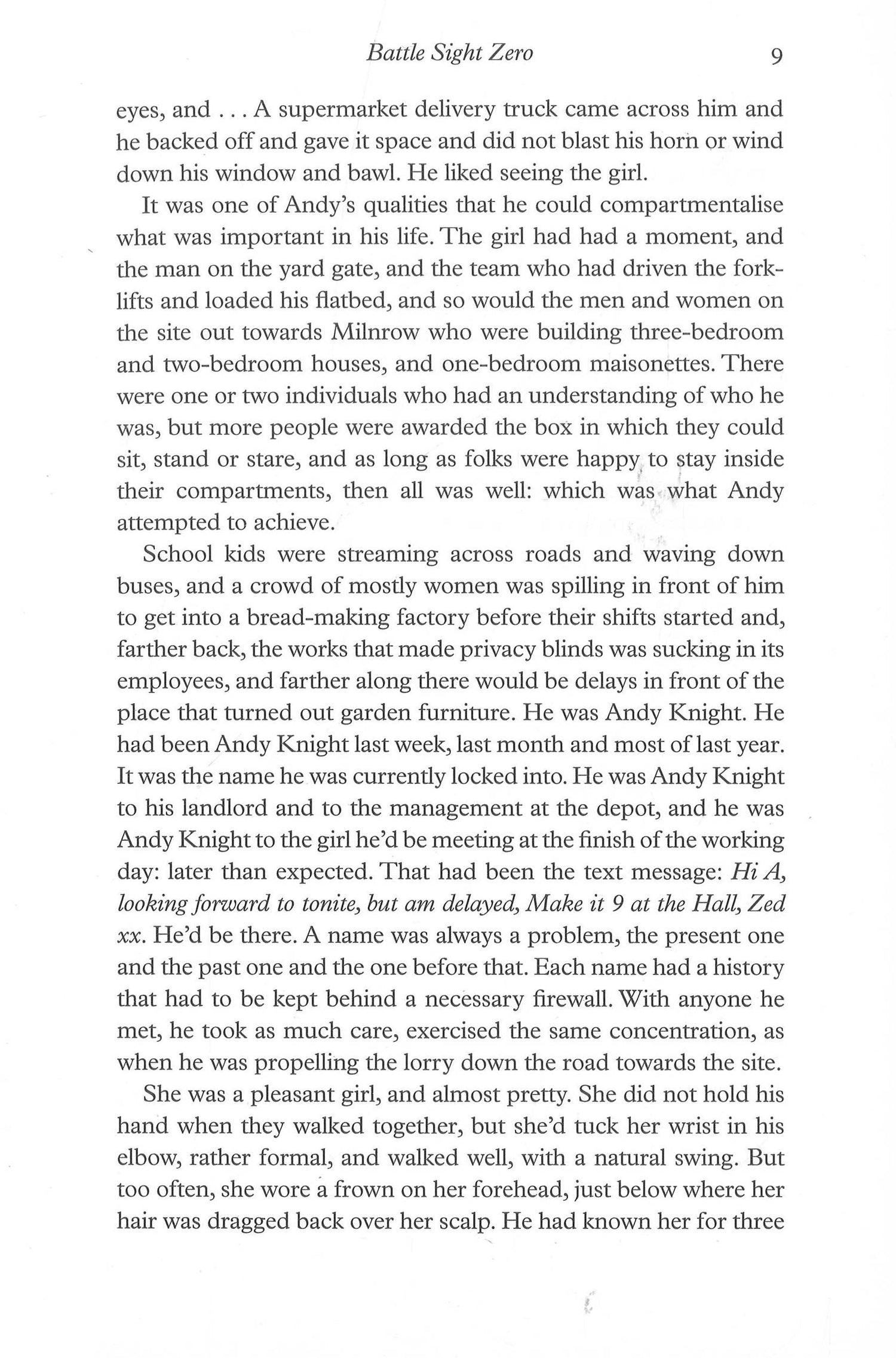 The Kalashnikov AK47. A weapon with a unique image. A symbol of freedom fighters and terrorists across the globe. Undercover officer Andy Knight has infiltrated an extremist group intent on bringing the rifle to Britain - something MI5 have been struggling for years to prevent. He befriends Zeinab, the young Muslim student from Yorkshire who is at the centre of the plot. All Zeinab needs to do is travel to the impoverished high-rise estates of Marseilles and bring one rifle home on a test run. Then many more will follow - and with them would come killing on an horrendous scale. Zeinab is both passionate and attractive, and though Andy knows that the golden rule of undercover work is not to get emotionally attached to the target, sometimes rules are impossible to follow. Supremely suspenseful, Battle Sight Zero follows Andy and Zeinab to the lethal badlands of the French port city, simultaneously tracking the extraordinary life journey of the blood-soaked weapon they are destined to be handed there.