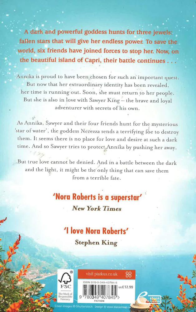To celebrate the rise of their new queen, three goddesses of the moon created three stars, one of fire, one of ice, one of water. But then they fell from the sky, putting the fate of all worlds in danger. And now three women and three men join forces to pick up the pieces... Mermaid Annika is from the sea, and it is there she must return after her quest to find the stars. New to this world, her purity and beauty are nothing less than breathtaking, along with her graceful athleticism, as her five new friends discovered when they retrieved the fire star. Now, through space and time, traveller Sawyer King has brought the guardians to the island of Capri, where the water star is hidden. And as he watches Annika in her element, he finds himself drawn to her joyful spirit. But Sawyer knows that if he allows her into his heart, no compass could ever guide him back to solid ground... And in the darkness, their enemy broods. She lost one star to the guardians, but there is still time for blood to be spilled - the mermaid's in the water and the traveler's on the land. For she has forged a dangerous new weapon. Something deadly and unpredictable. Something human