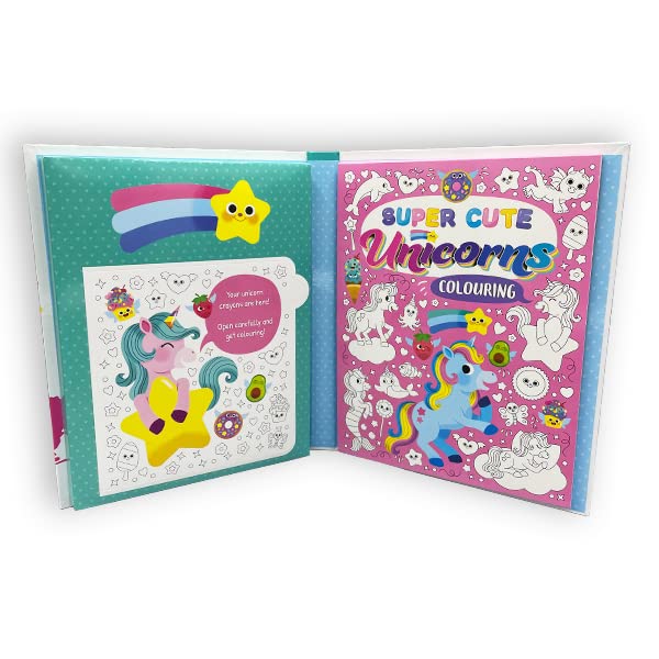 There are over 30 pages of cute scenes to complete inside this amazing book full of unicorns and all their magical friends. With 16 stackable shaped crayons included, you can complete awesome pictures featuring surfing unicorns, mermaids, fabulous fairies and much more! There are hours of creative fun to enjoy, so get colouring!