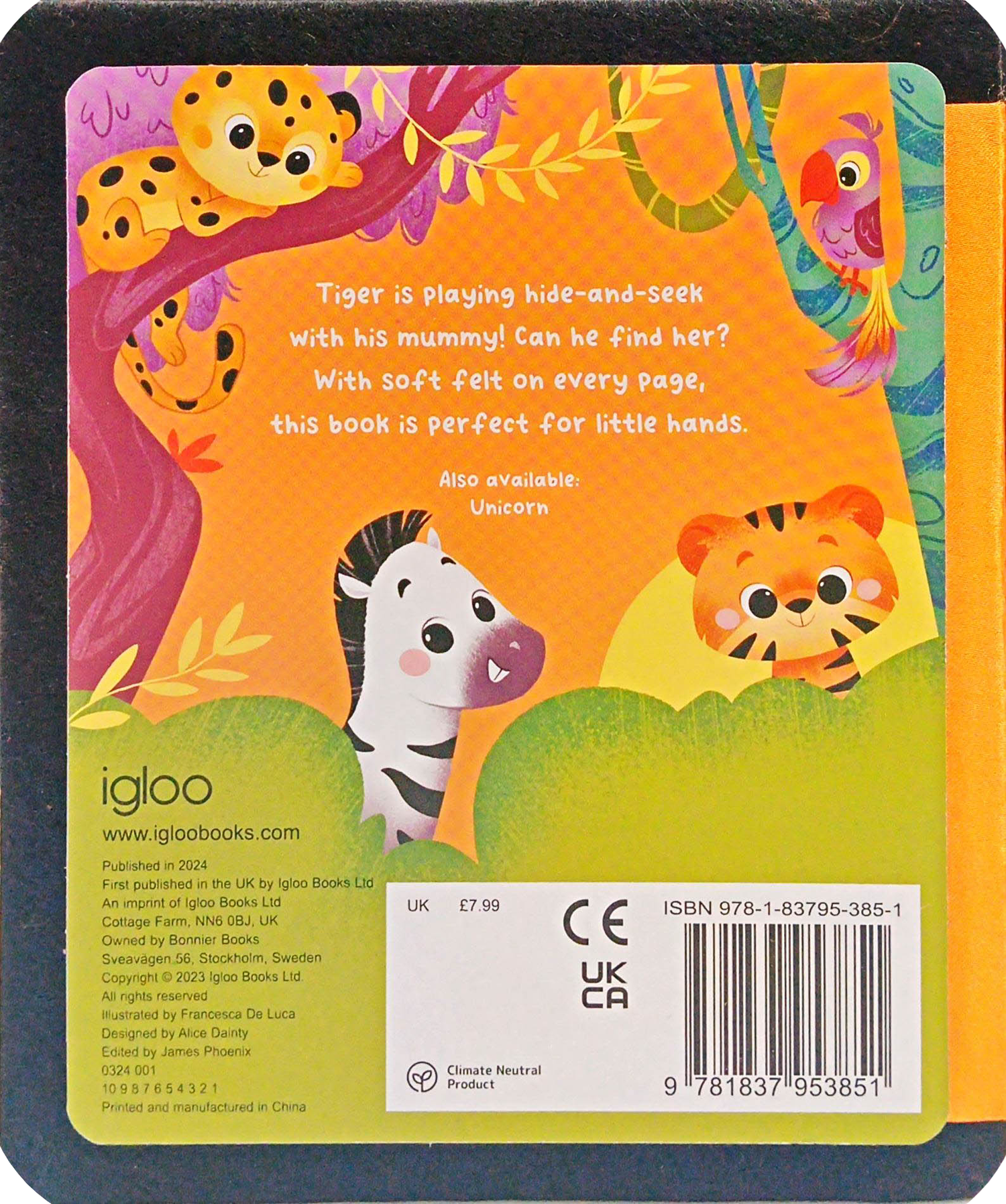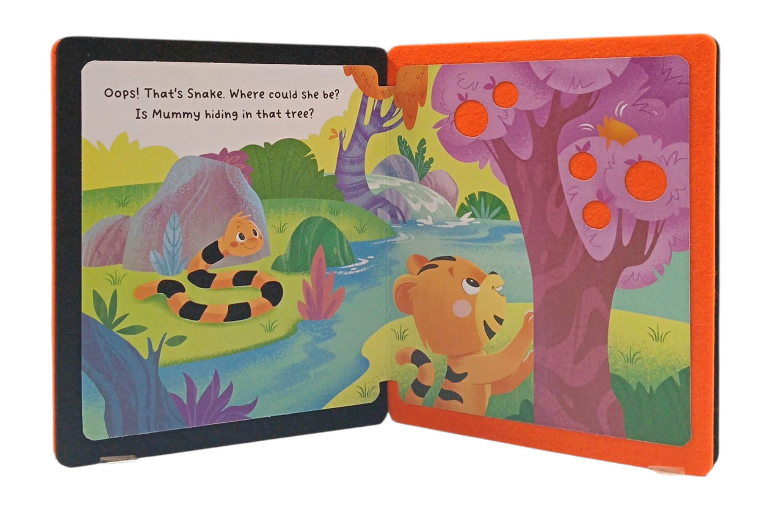Tiger is playing hide-and-seek with his mummy! Can he find her? With soft felt on every page, this book is perfect for little hands.