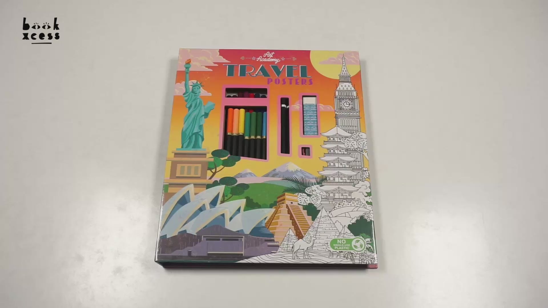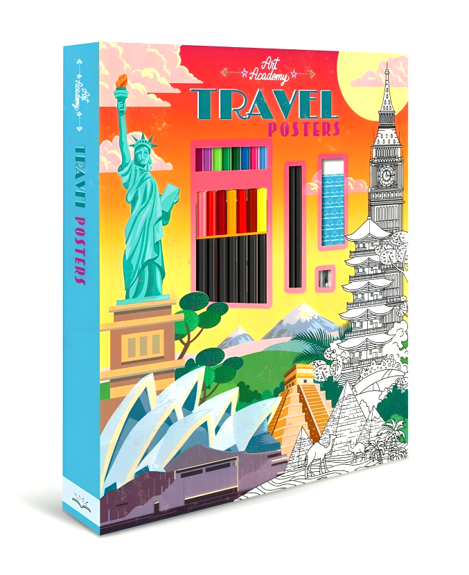 Get ready to embark on a journey through snow-capped mountains, bustling cities and memorable landmarks in this beautiful travel poster colouring set.