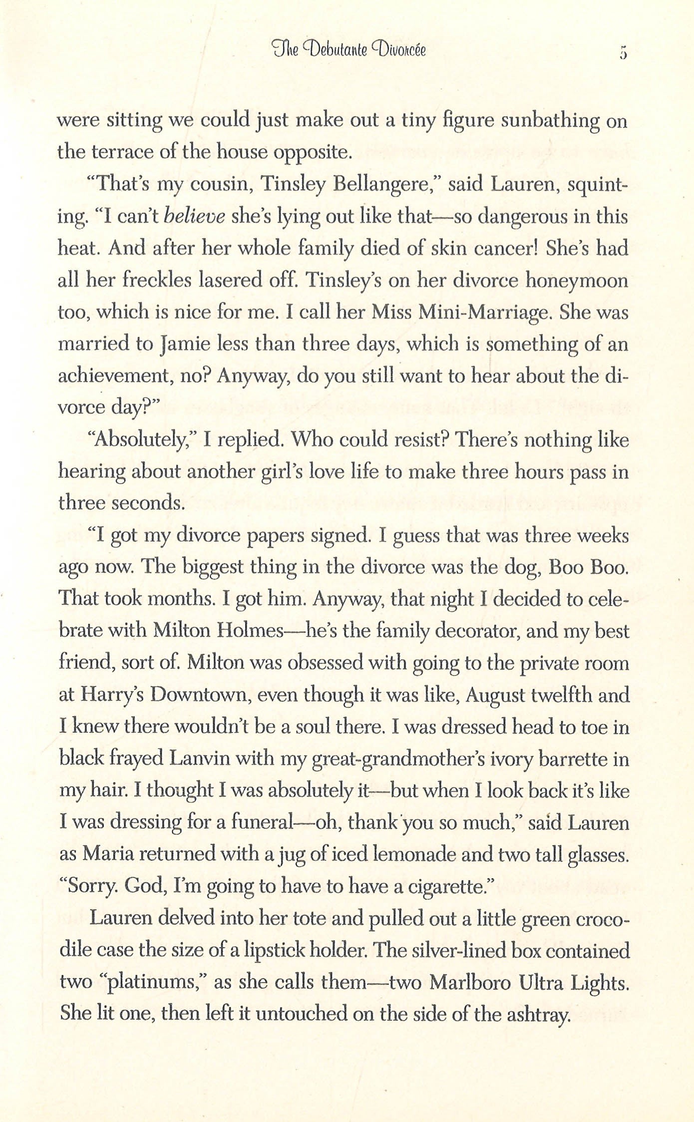 The New York Times bestselling second novel from the Sunday Times bestselling author of Bergdorf Blondes, set in the cutthroat world of Manhattan's most eligible elite Sylvia Mortimer is licking her wounds somewhat: she's back from her honeymoon, and her husband is already AWOL. But then she meets Lauren Blount, queen bee of Manhattan's glamorous Debutante Divorcee set. Lauren's the gleaming, glossy proof that there's life after divorce - in fact, she wears it fabulously. But when New York's most notorious Husband Huntress sets her sights on Sylvia's new man, she starts to wonder - is Lauren right that no one needs a husband anyway? Or should she hold out for Happily Ever After II, stand up and fight for her man?