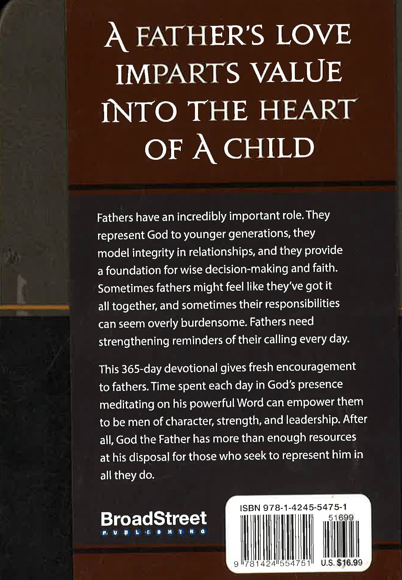 This 365-day devotional gives fresh encouragement to fathers. Time spent each day in God's presence meditating on his powerful Word can empower them to be men of character, strength, and leadership. After all, God the Father has more than enough resources at his disposal for those who seek to represent him in all they do.