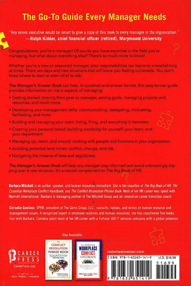 The Manager's Answer Book will help any manager stay informed and avoid unknowingly tripping over a new situation. It's a natural complement to The Big Book of HR.