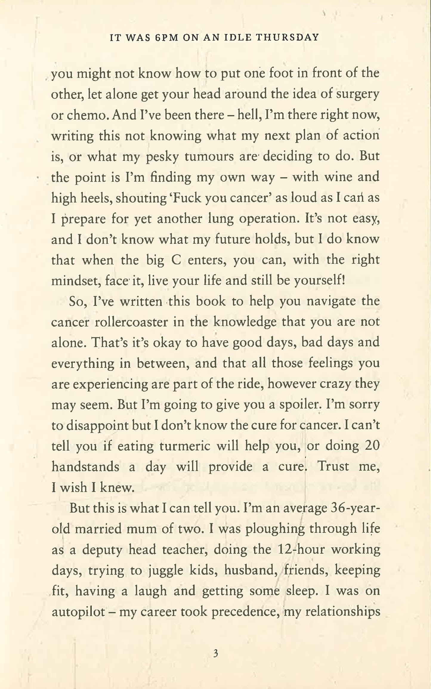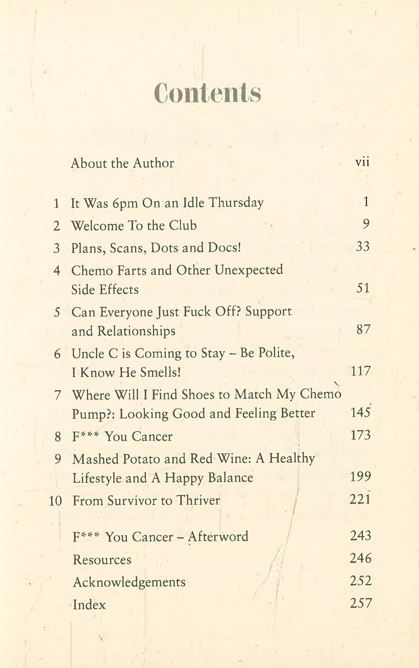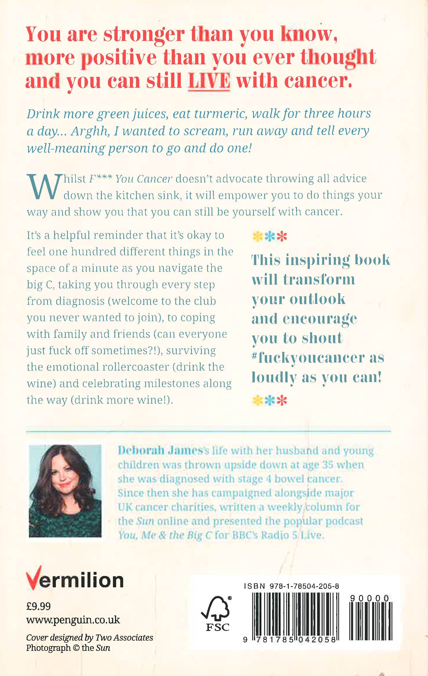 Taking you from diagnosis (welcome to the club you never wanted to join), to coping with family and friends (can everyone just fuck off sometimes?!), looking good and feeling better (drink the wine), and celebrating milestones along the way (drink more wine!), this inspiring cancer coach in a book will transform your outlook and encourage you to shout #FUCKYOUCANCER as loudly as you can!