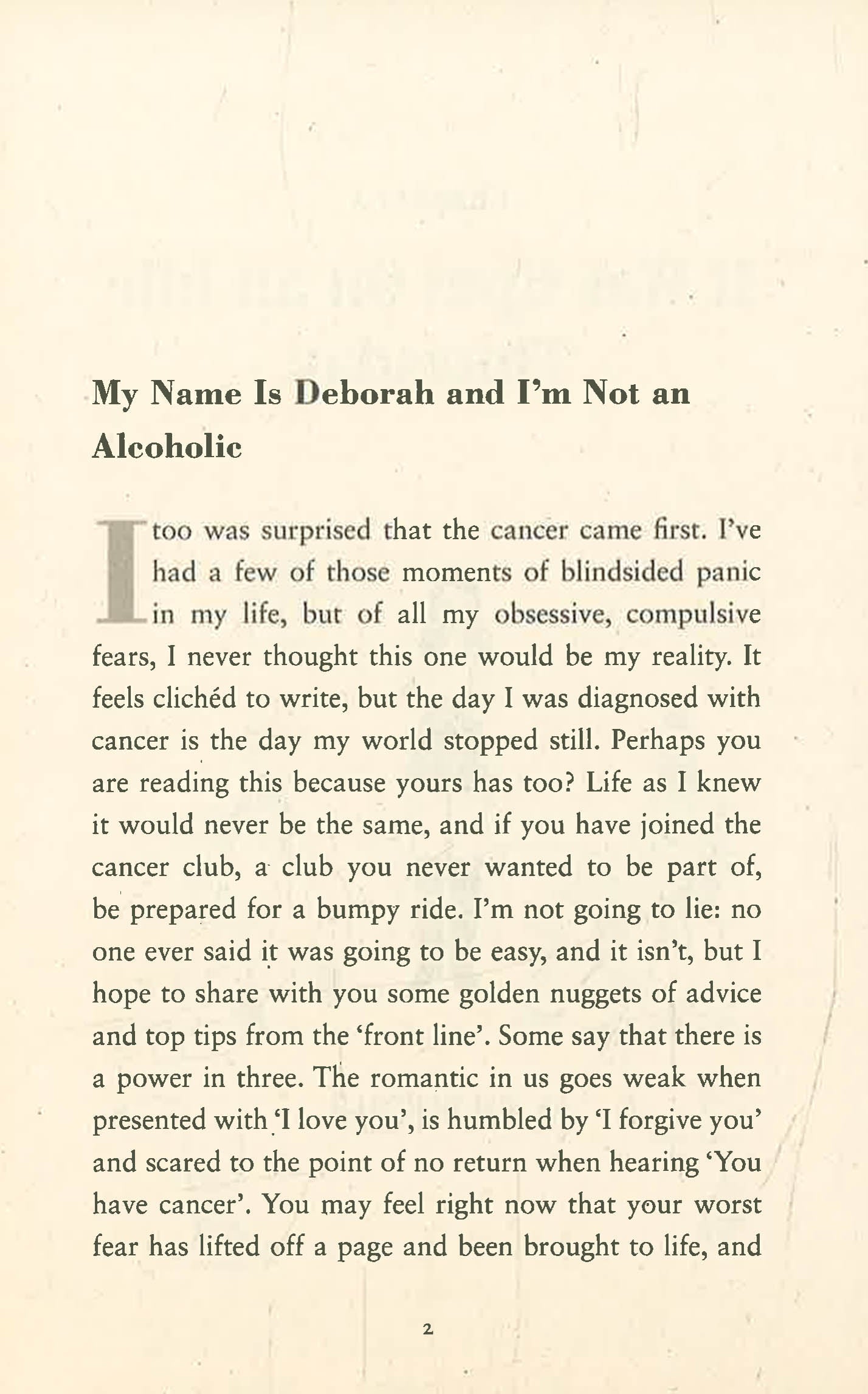 Whilst this book doesn't advocate throwing all advice down the kitchen sink, it will empower you to do things your way as you navigate the big C roller coaster.