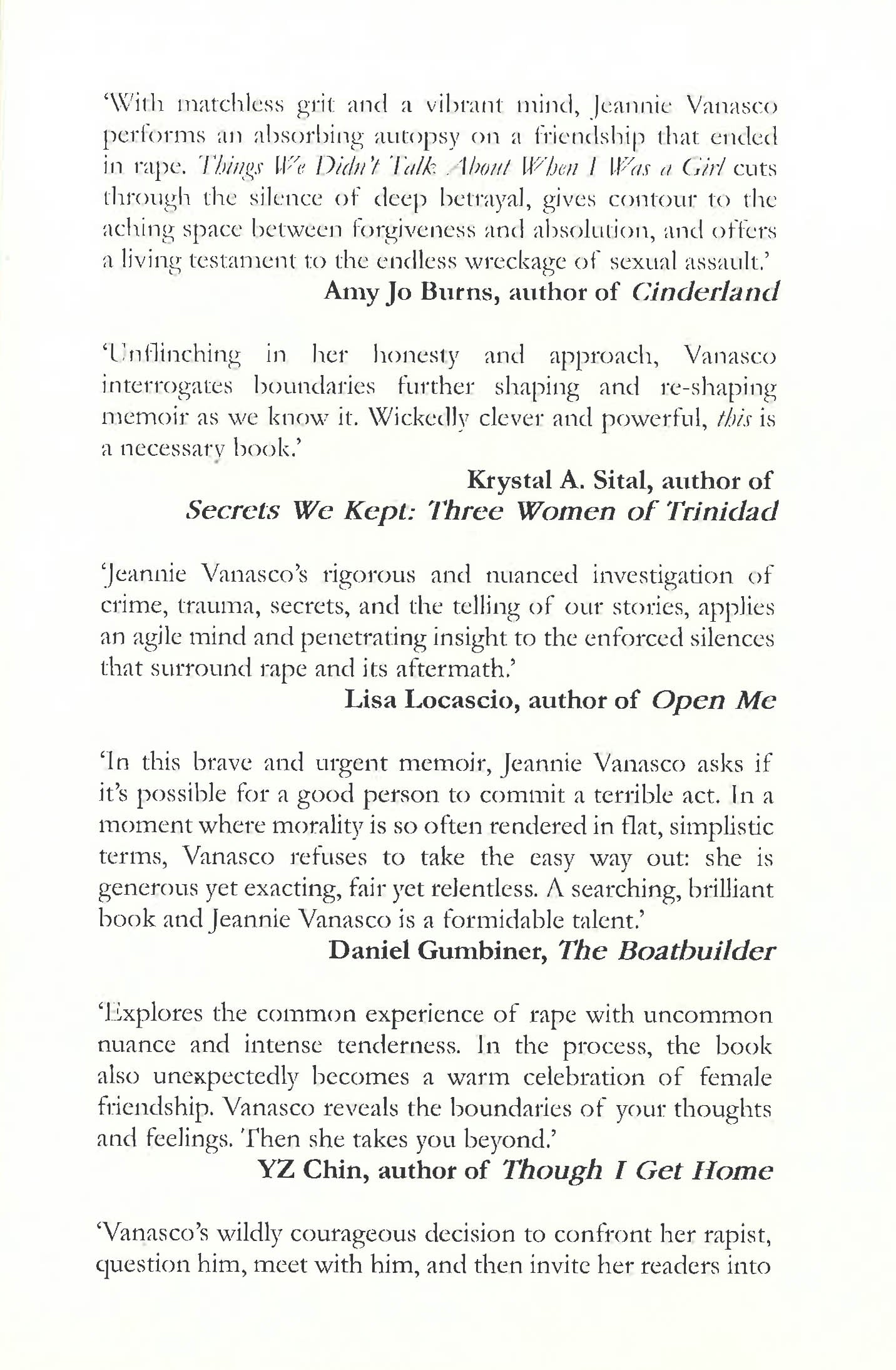 Fifteen years ago, Jeannie's relationship with a close friend ended in rape. With the rise of the #MeToo movement, recurring nightmares of the event that plagued her as a girl have returned. To process her conflicted feelings of betrayal and take back control, she resolves to face her trauma head-on by interviewing her rapist.