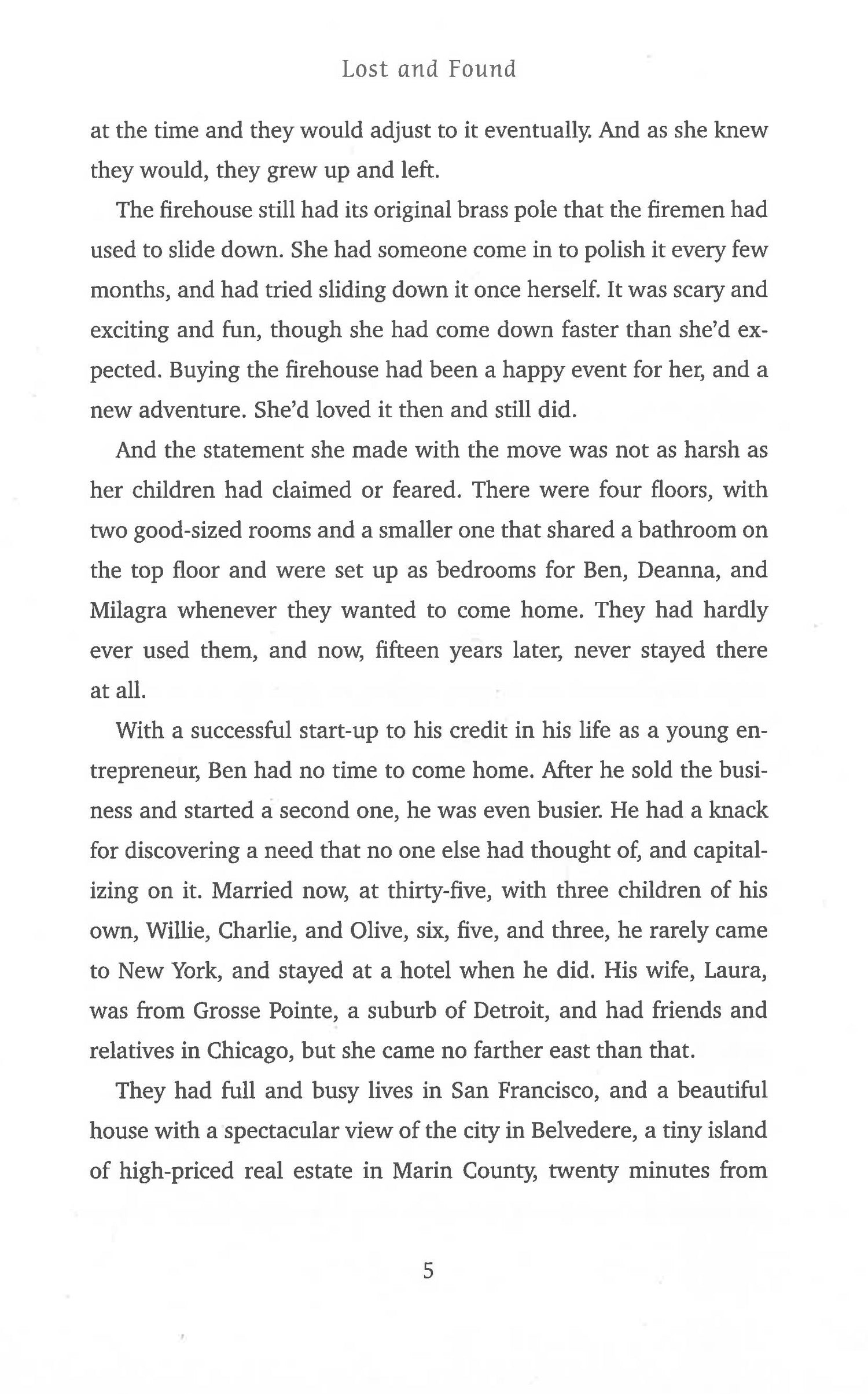 From New York to Santa Fe, Lost and Found by Danielle Steel is a novel about first love, second chances and whether there is such a thing as happy ever after.What might have been? This tantalizing question propels a woman on a cross-country adventure to reunite with the men she had loved and let go.Madison Allen is a renowned, career-driven photographer. Sifting through old photos in her fashionable New York fire-house apartment, she reflects on what could have been. She'd had three men in her life who were very important to her in different ways, but it was the fourth love, her job, which always won in the end.Consumed by old memories and with a forced pause in her demanding schedule, Maddie embarks on a road trip. She hopes to answer questions about the men she'd loved and might have married in the years after she was left alone with three young children. As Maddie sets off to reconnect with her past in Boston, Chicago and Wyoming, she hopes to learn that the decisions she made long ago were the right ones.And as her life comes into clearer focus, a new unexpected future takes shape, and is a valuable lesson to all of us who have ever wondered 'what if?'