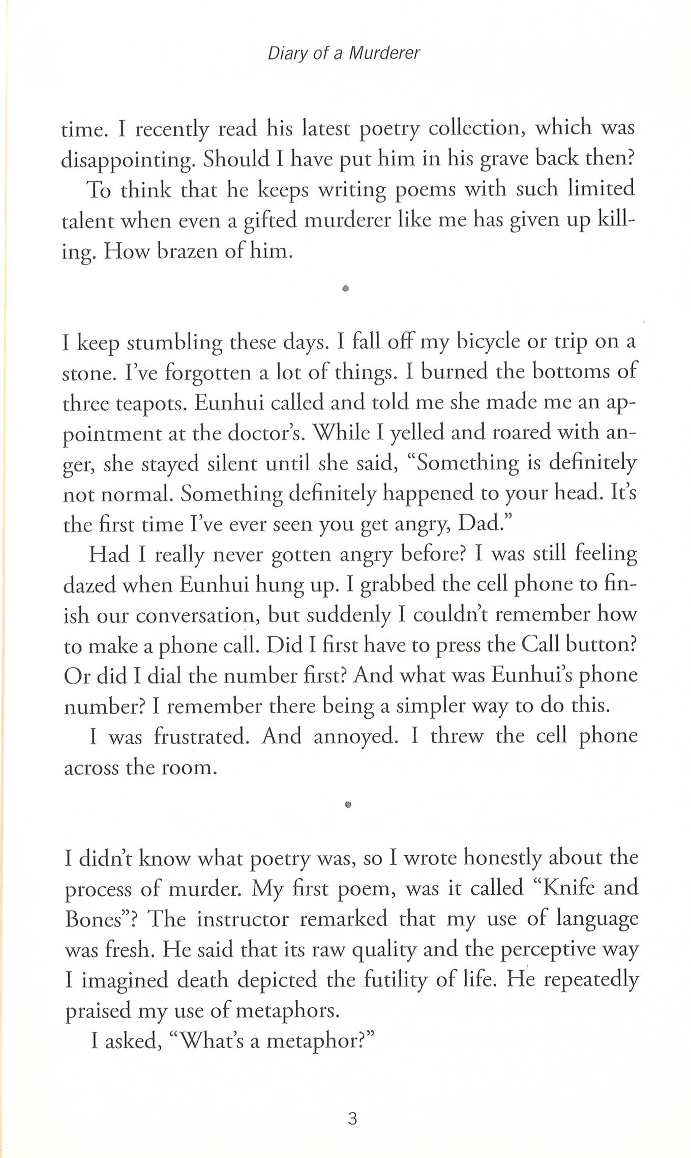 Kim Byeongsu is losing his mind. Quite literally. He keeps forgetting the little things in life, like basic words, whether or not he has a dog, the last time he killed someone...In his prime, Byeongsu was one of the best murderers around, spending years obsessively trying to perfect his technique, only killing in the pursuit of artistry. And then he gave it all up to be a dedicated father to his adopted-daughter, Eunhui. Now though, suffering from the onset of dementia, he decides to come out of retirement one last time and for one final target: his daughter's boyfriend, who he believes is a serial killer just like him. After all, it takes one to know one.In other dark and glittering tales, an affair between two childhood friends questions the limits of loyalty and love; a family disintegrates after a baby son is kidnapped and recovered years later; and a wild, erotic pursuit of creativity might just come at the expense of all sanity.'Filled with the kind of sublime, galvanizing stories that strike like a lightning bolt, searing your nerves' Nylon