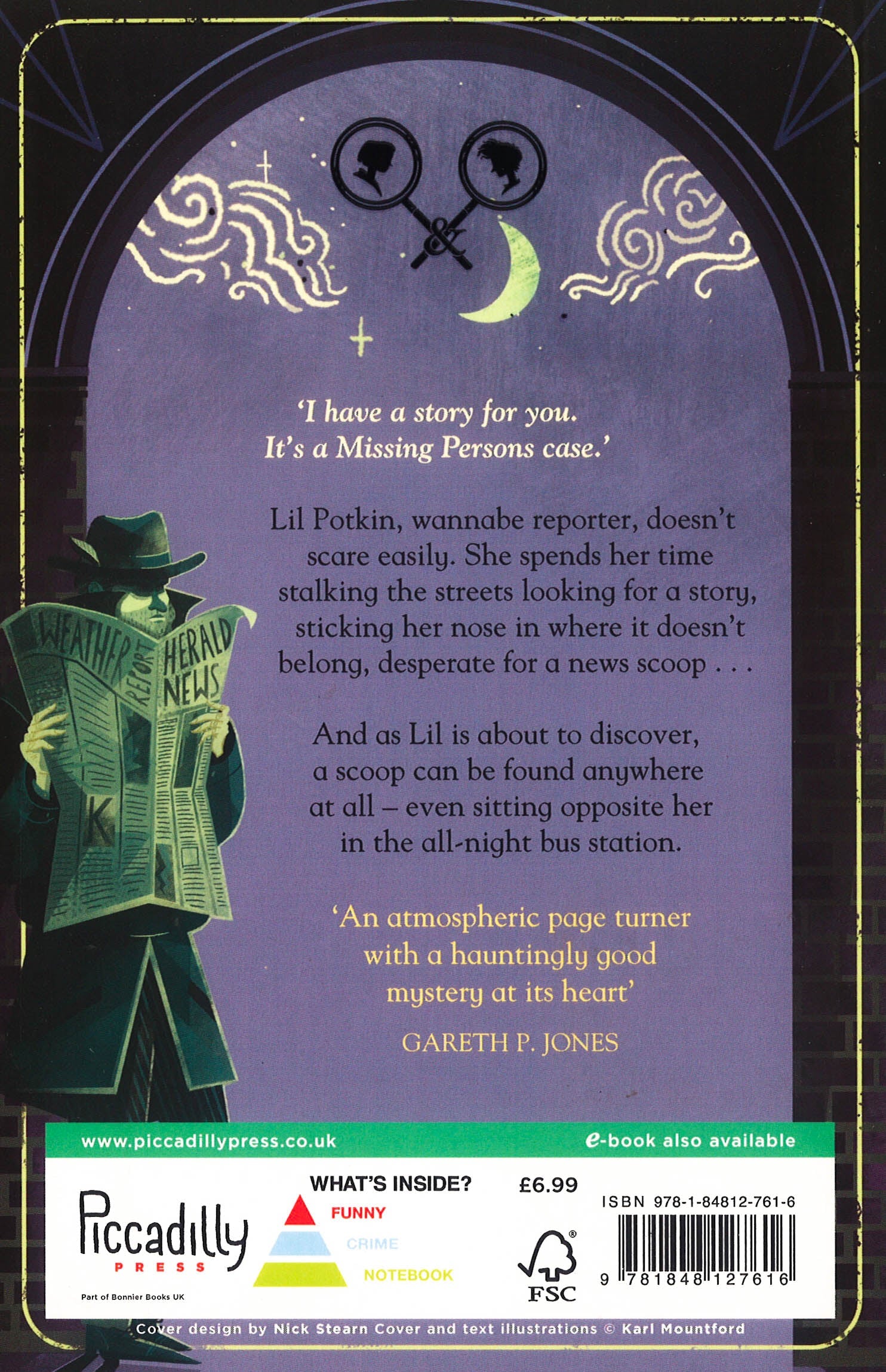 A brilliant new series bursts onto the scene filled with ghostly goings-on and an unusual investigative duo. With illustrations from Karl Mountford. Lil Potkin lives in bleak Peligan City. Her mum works in City Hall and is rarely at home, so aspiring journalist Lil has all the time she needs to explore the city in her bright yellow raincoat, investigating unsolved stories. One rainy evening Lil meets a sad-looking boy sitting by himself in the bus station and buys him a hot chocolate. That night Lil wakes to find him in her bedroom. He doesn't want to admit to being a ghost, but when he finally remembers his name (Nedly ... possibly) he explains that he needs Lil's help to find out what happened to him after he disappeared from his orphanage a year ago. So Lil and Nedly - aka Potkin and Stubbs - team up to solve their mystery, and they call in the reluctant help of once-famous detective Abe Mandrel. He agrees to help them with the Stubbs case if they help him find the criminal who escaped justice and cost him his career. Except - Mandrel thinks it's only Lil he's working with. And Lil realises she is the only person in the whole of Peligan City who can see Nedly. Which can come in handy when trying to solve crime... Funny, atmospheric, spooky - the perfect detective story for young readers