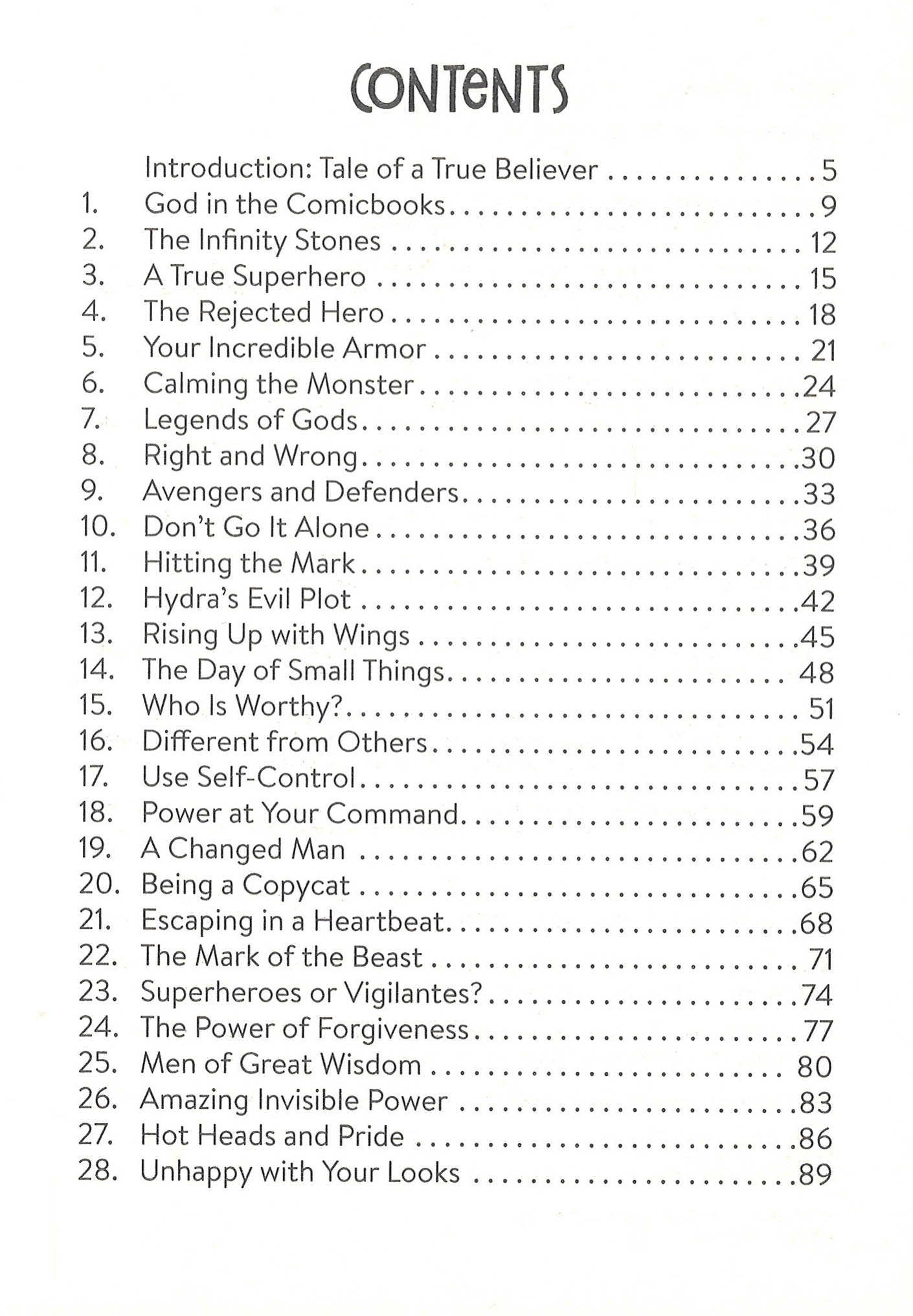 With devotions drawn from dozens of favorite superheroes from both the Marvel and DC Comics universes--well-known names like Captain America and Wonder Woman and lesser-known heroes like Shazam and Gambit--each reading includes spiritual lessons relating superheroes to the heroes of the Bible in themes like faith, hope, courage, pride, and power. Whether it's the self-sacrifice and humility of Captain America and the Hulk's struggles with anger or the parallels between Superman and Jesus or between Black Widow and a ruthless Bible heroine, your favorite heroes and heroines (and even villains) have much to teach.