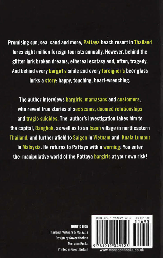 Promising sun, sea, sand and more, Pattaya beach resort in Thailand lures eight million foreign tourists annually. However, behind the glitter lurks broken dreams, ethereal ecstasy and, often, tragedy. And behind every bargirl's smile and every foreigner's beer glass lurks a story: happy, touching, heart-wrenching.The author interviews bargirls, mamasans and customers, who reveal true stories of sex scams, doomed relationships and tragic suicides. The author's investigation takes him to the capital, Bangkok, as well as to an Isaan village in northeastern Thailand, and further afield to Saigon in Vietnam and Kuala Lumpur in Malaysia. He returns to Pattaya with a warning: You enter the manipulative world of the Pattaya bargirls at your own risk!