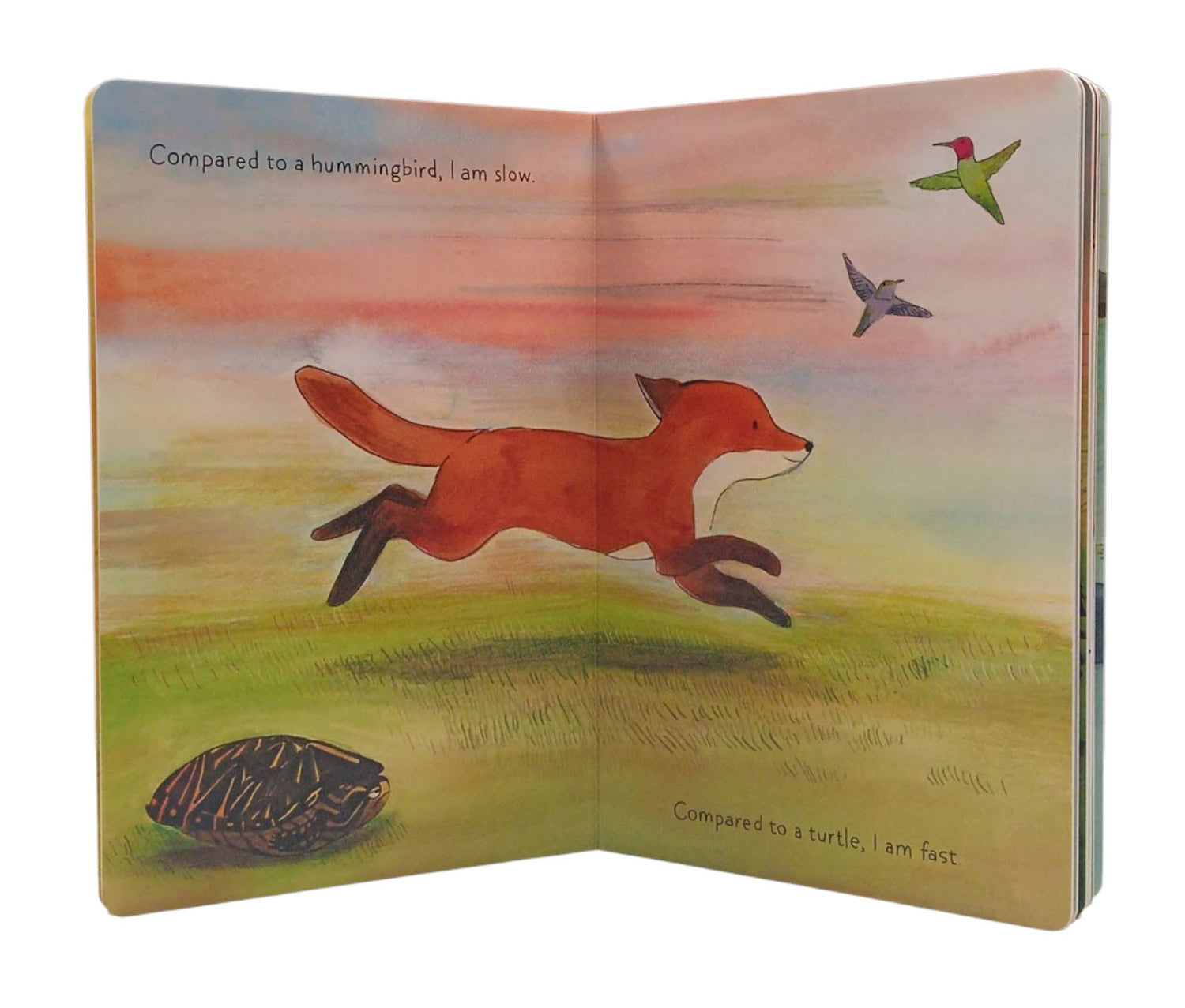 TEACHES COMPARISONS: The idea of seeing through the animal's eyes using comparisons to familiar ideas (Kit is slower than a hummingbird but faster than a turtle) is a perfect introduction to comparative logic.