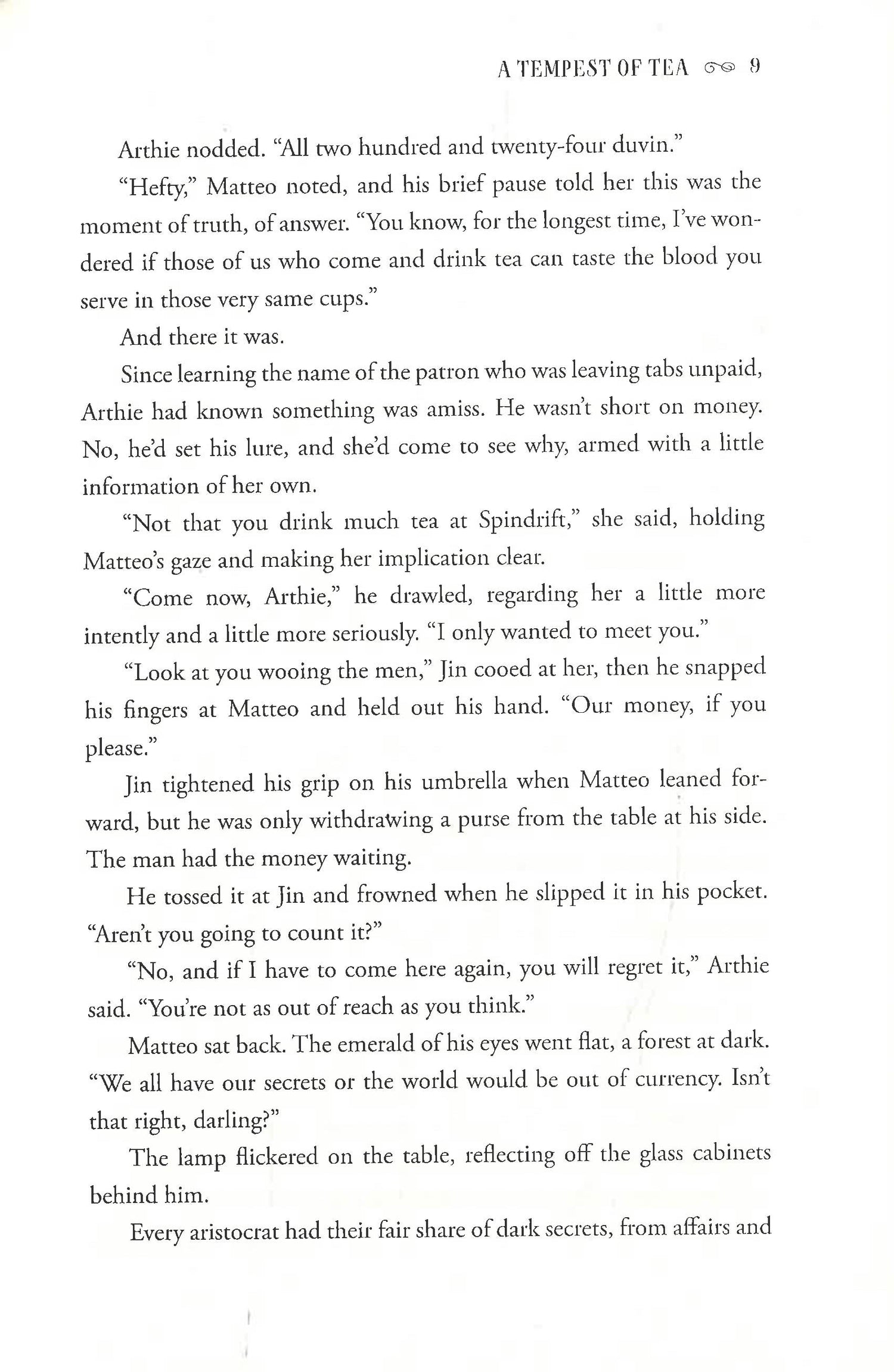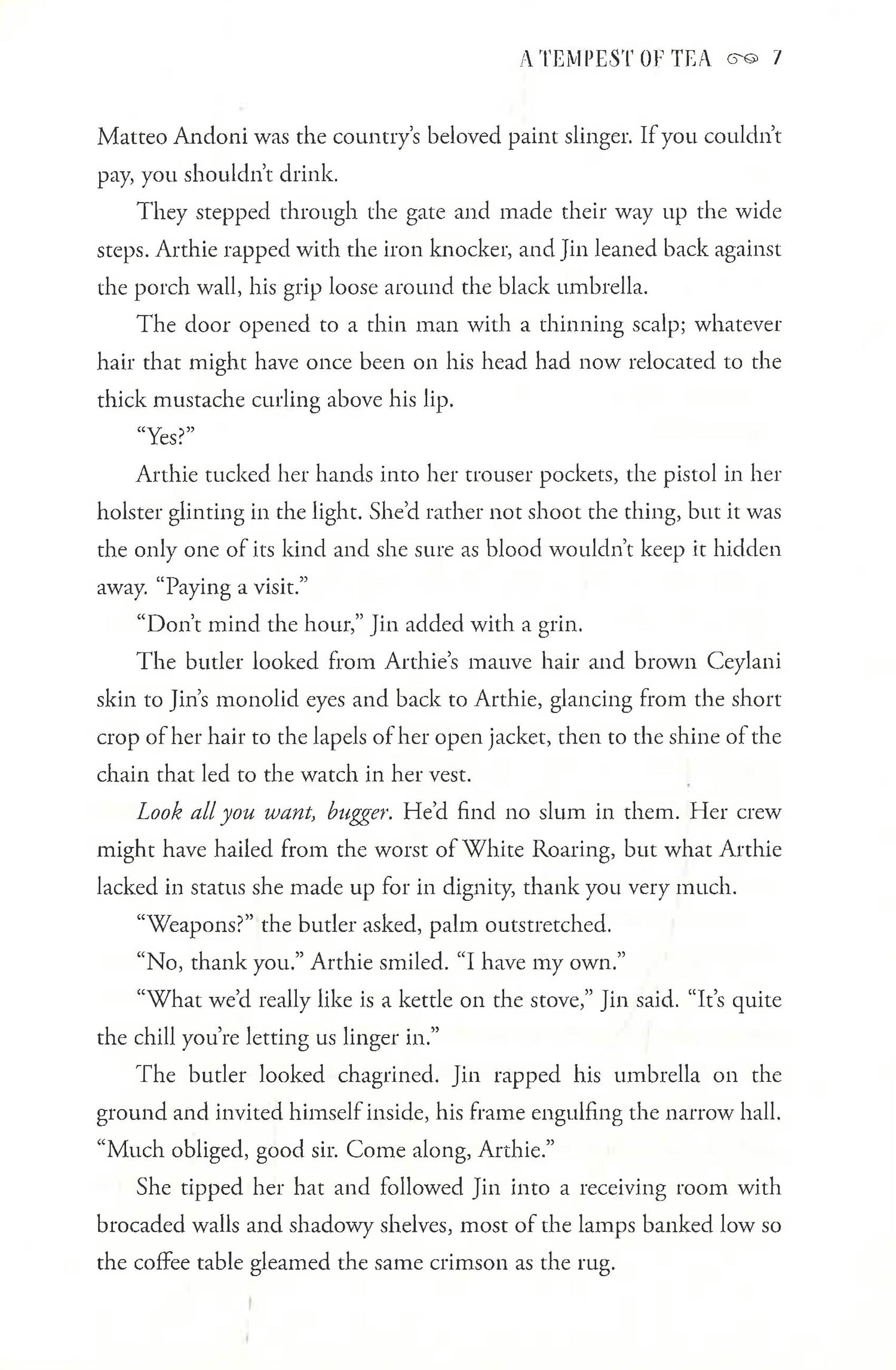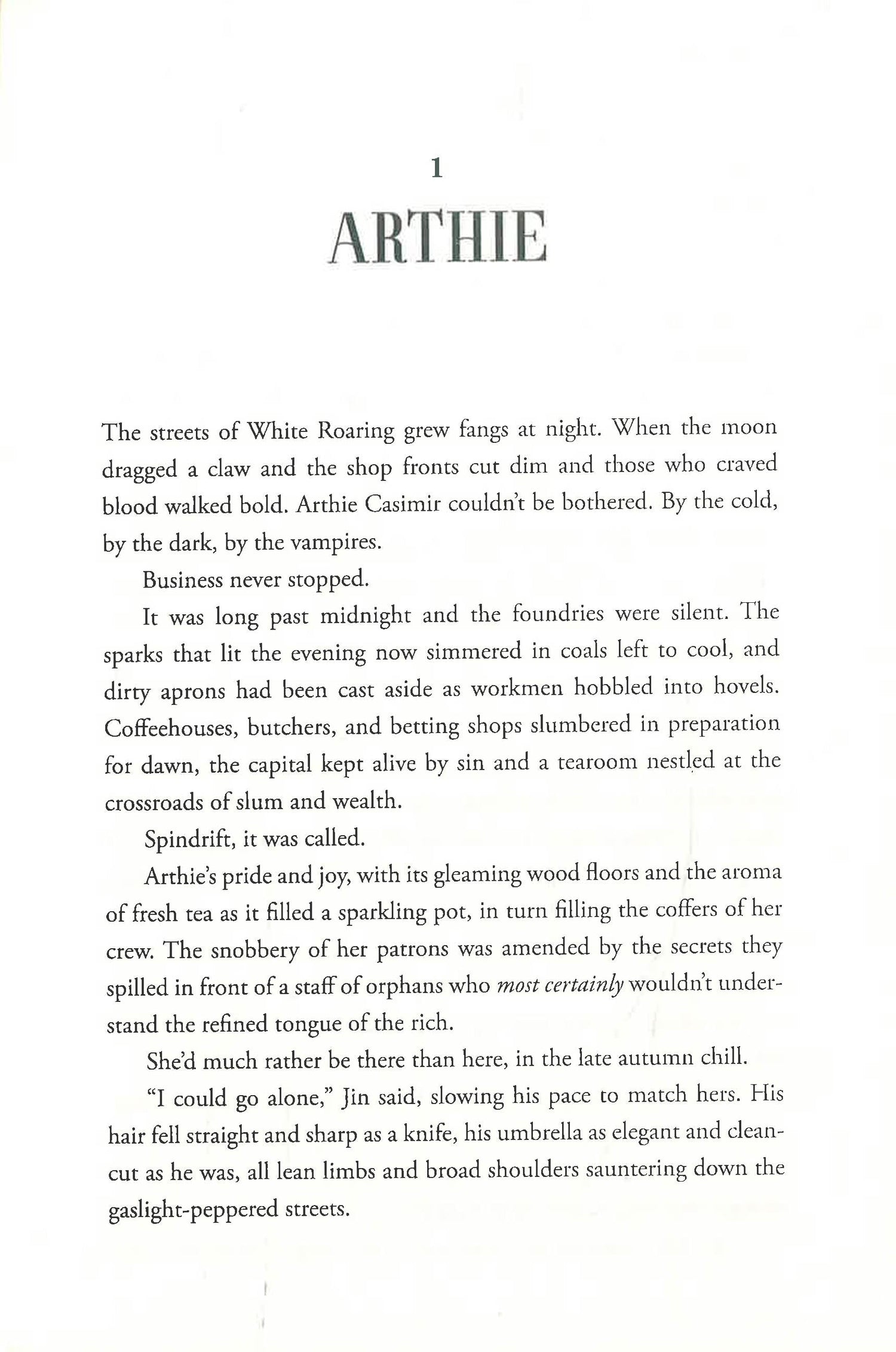 On the streets of White Roaring, Arthie Casimir is a criminal mastermind and collector of secrets. Her prestigious tearoom transforms into an illegal bloodhouse by night, catering to the vampires feared by society. But when her establishment is threatened, Arthie is forced to strike an unlikely deal with an alluring adversary to save it--she can't do the job alone.