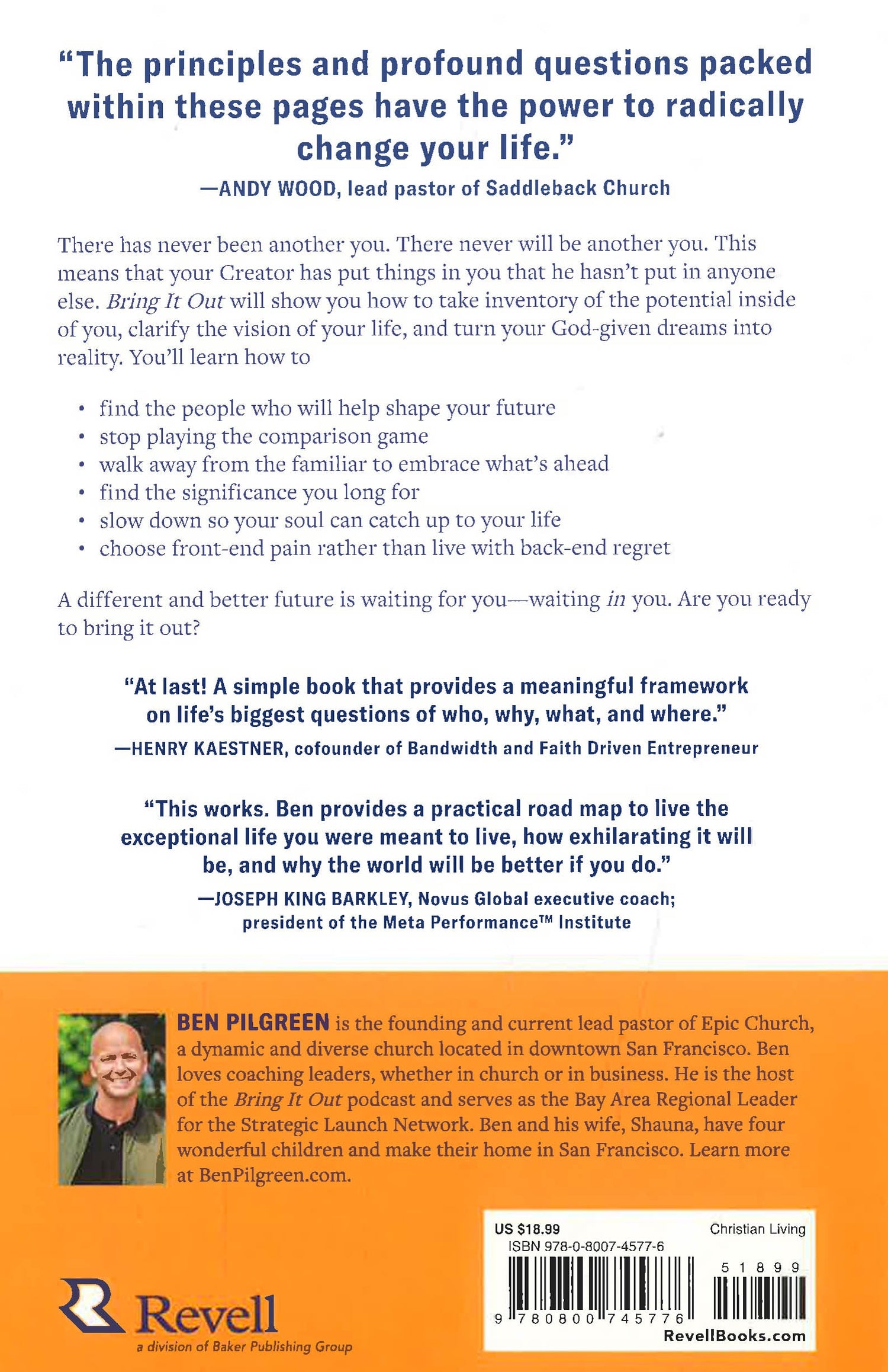 There has never been another you. There never will be another you. This means that your Creator has put things in you that he hasn't put in anyone else. The principles shared in Bring It Out will show you how to take inventory of the gifts, callings, and potential inside of you; clarify the vision of your life; and turn your God-given dreams into reality. Bring It Out helps you