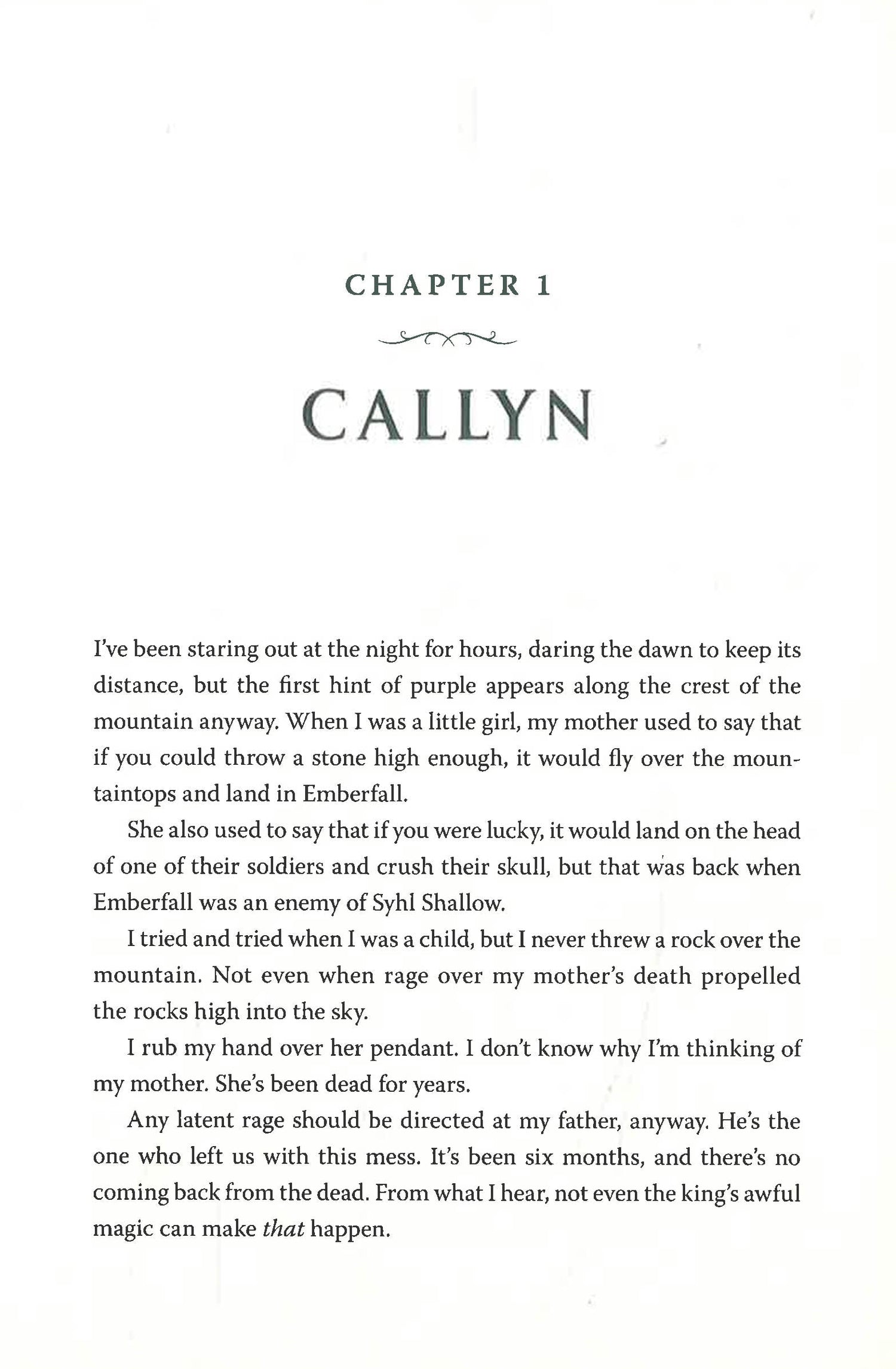 Jax's best friend, Callyn, doesn't trust anyone--especially not a handsome stranger with magic, which killed her parents years ago. When another royal emissary arrives, seeing a co-conspirator, Callyn finds herself embroiled in a plot that could lead them all to ruin. . .