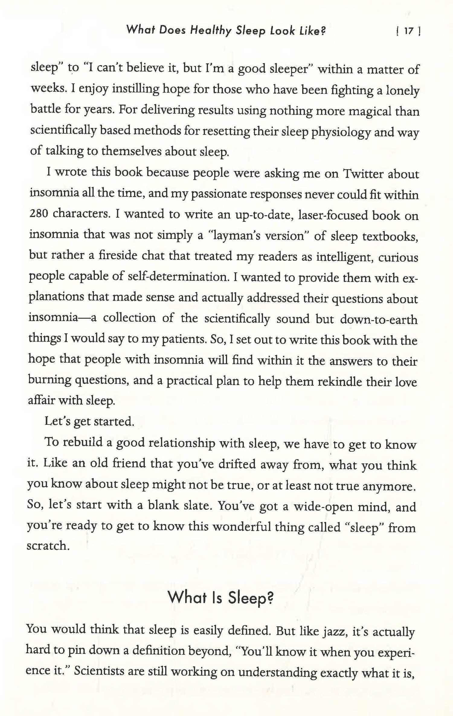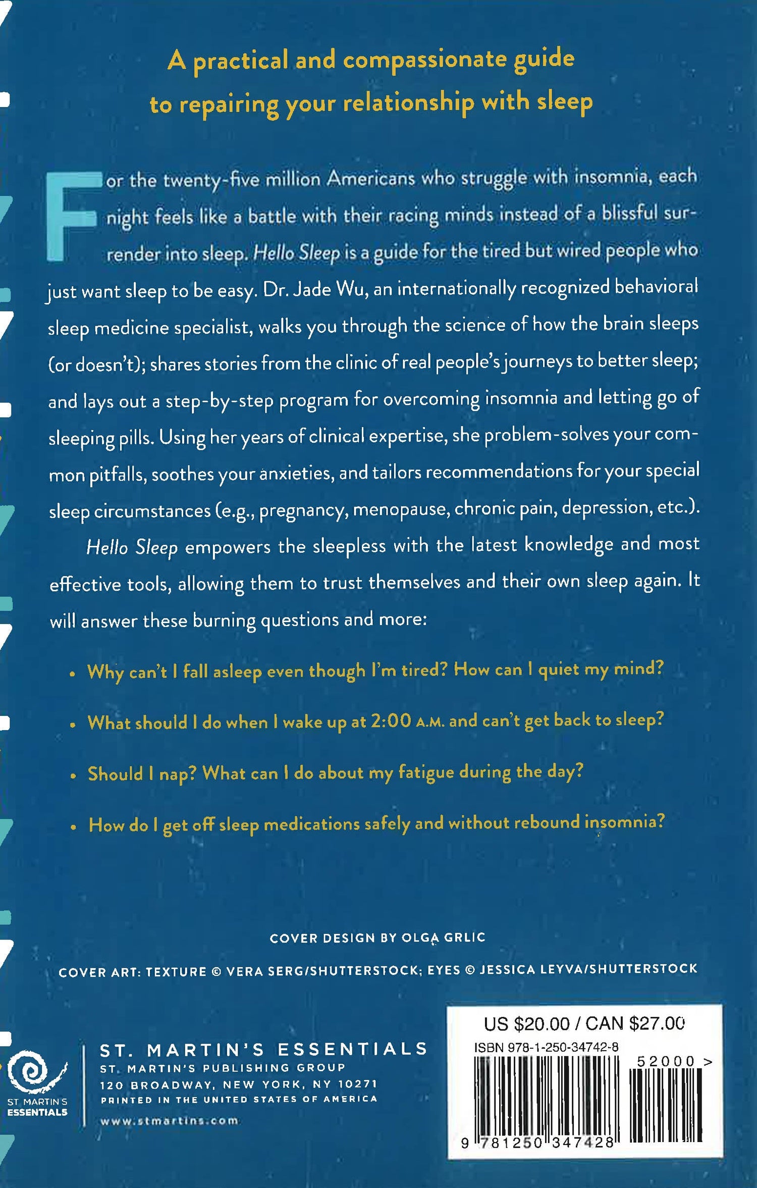 For many people who have trouble sleeping, each night is an anxious odyssey where getting a good night’s sleep feels like a battle to win rather than a basic biologic process. Hello Sleep is a guide for people with insomnia to help them shift their relationship with sleep, so that it stops being a battle and starts being enjoyable and natural again. A practical, self-guided tour through evidence-based interventions for chronic insomnia, Hello Sleep includes cognitive behavioral therapy for insomnia (CBT-I), phototherapy, chronotherapy, mindfulness-based approaches, and medication tapering. Jade Wu, a behavioural sleep medicine specialist and researcher, provides in-depth but down-to-earth scientific explanations of how sleep and insomnia work; anecdotes about real patients’ experiences with overcoming insomnia; rationale for why the evidence-based interventions help; and tips for how to problem-solve common pitfalls, along with tailored recommendations for special circumstances (e.g., pregnancy/postpartum, menopause, chronic pain, depression, older adults etc.). Hello Sleep is not a rigid set of rules or a one-size-fits-all approach. Wu believes this can make things worse for those with insomnia issues, making what was once easy and intuitive into something effortful and elusive. Instead, Hello Sleep treats insomniacs with respect, by giving them knowledge and empowering them to trust themselves and their own sleep.