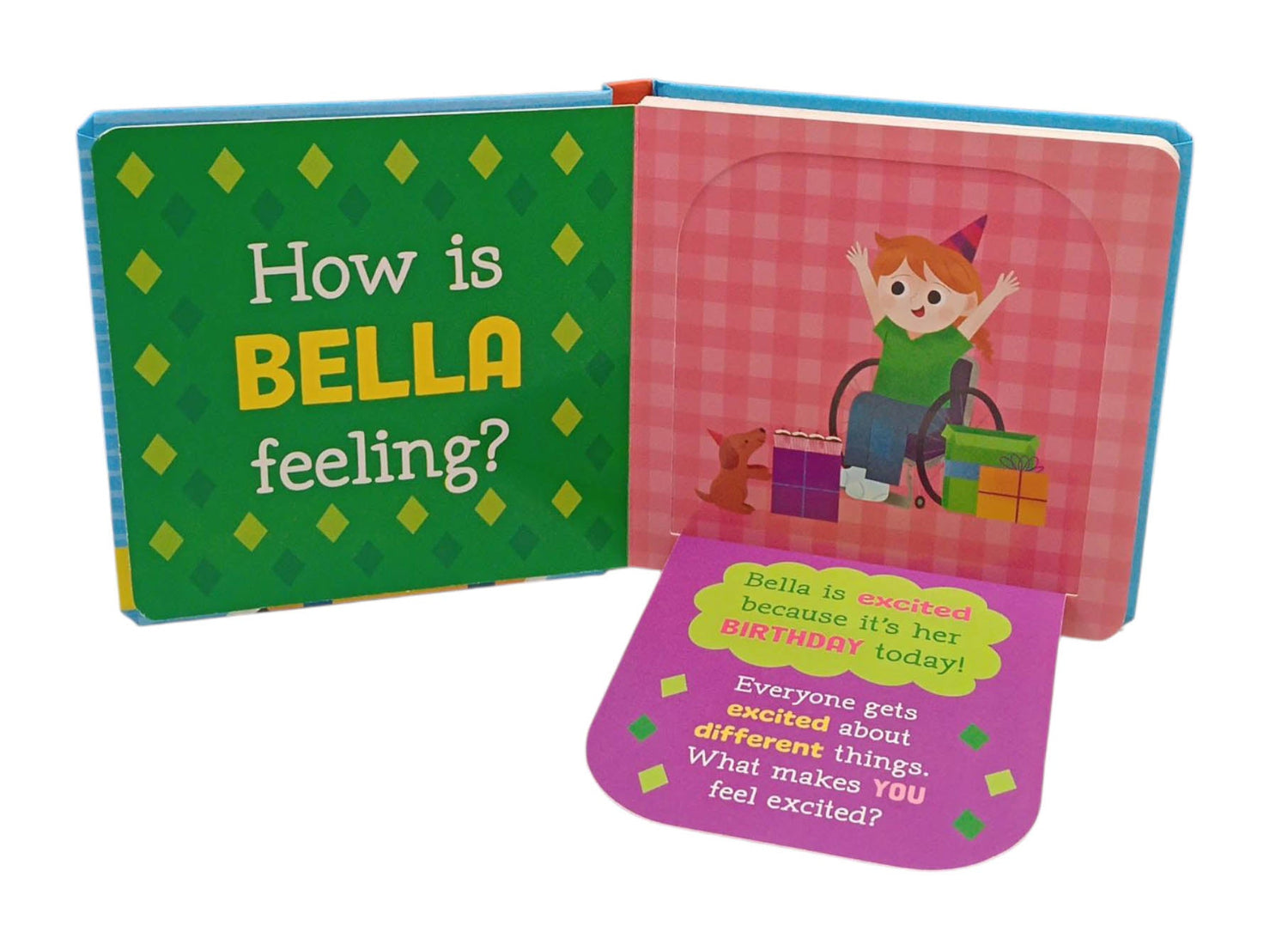 Lift the flaps to learn all about feelings in this fun, interactive board book. The book includes a mirror at the end to help little ones recognise their own feelings. Designed to help young children recognise feelings of excitement, sadness and calm.