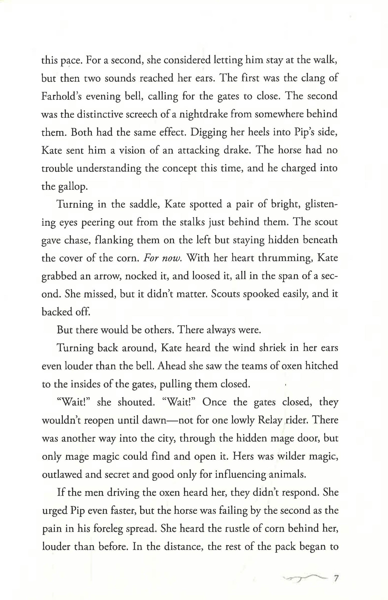 Cast out of the nobility, Kate now works for the royal courier service. Only the most skilled ride for the Relay and only the fastest survive, for when night falls, the drakes—deadly flightless dragons—come out to hunt. Fortunately, Kate has a secret edge: She is a wilder, born with forbidden magic that allows her to influence the minds of animals.