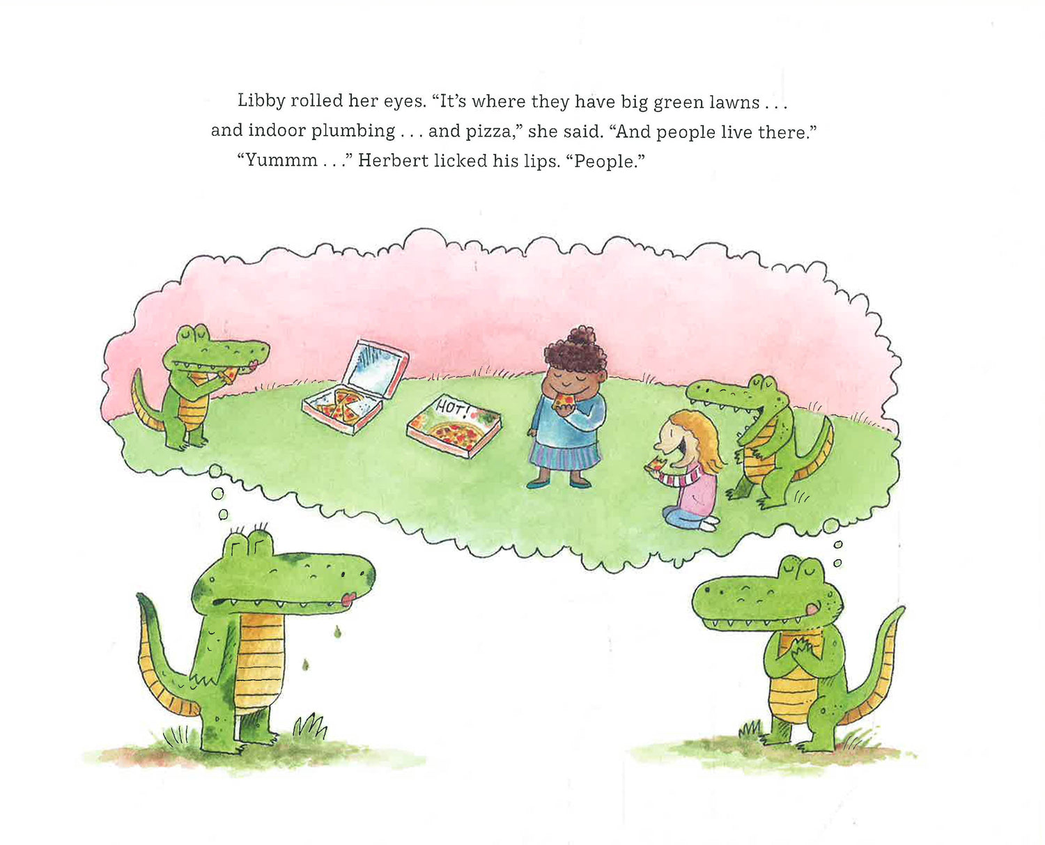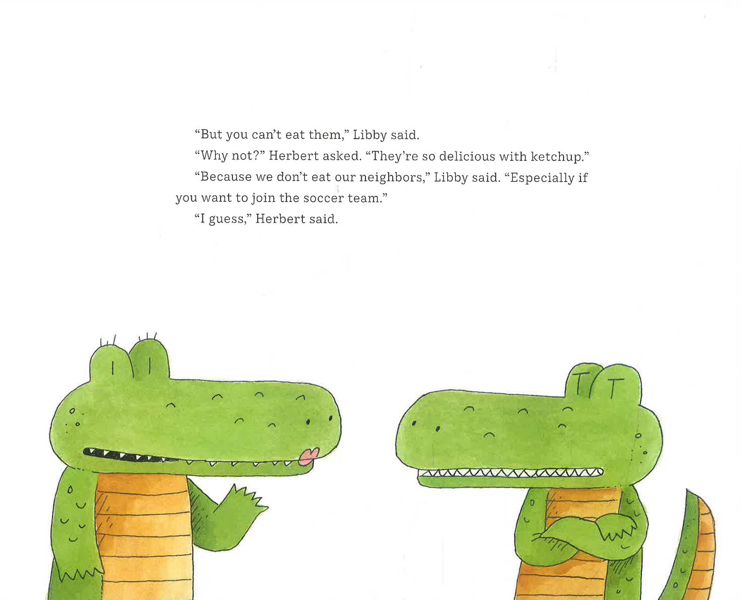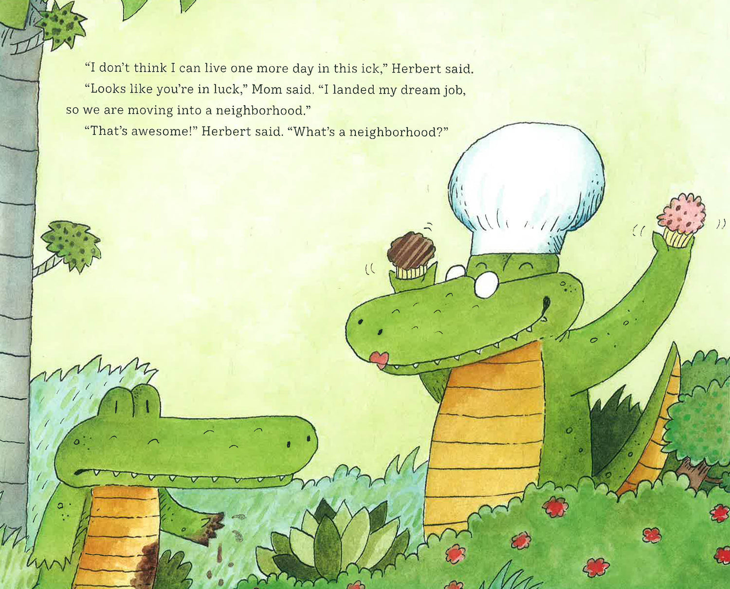 After Libby and Herbert Alligator’s mom lands her dream job as a pastry chef, the family is moving on up out of the slimy swamp and into a bustling town filled with houses, restaurants, schools . . . and people. Libby can’t wait to meet the new neighbors. Herbert can’t wait to eat them.