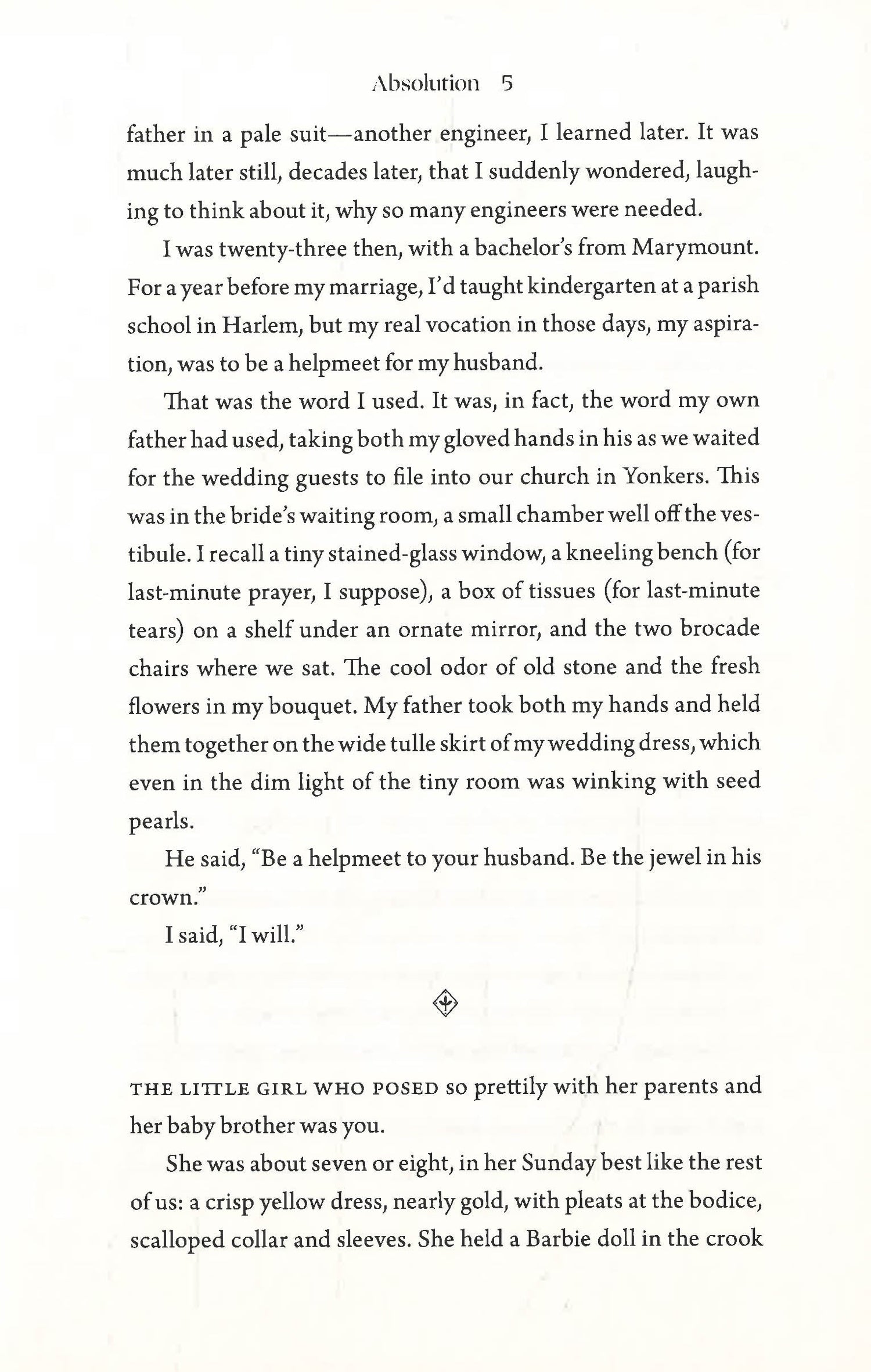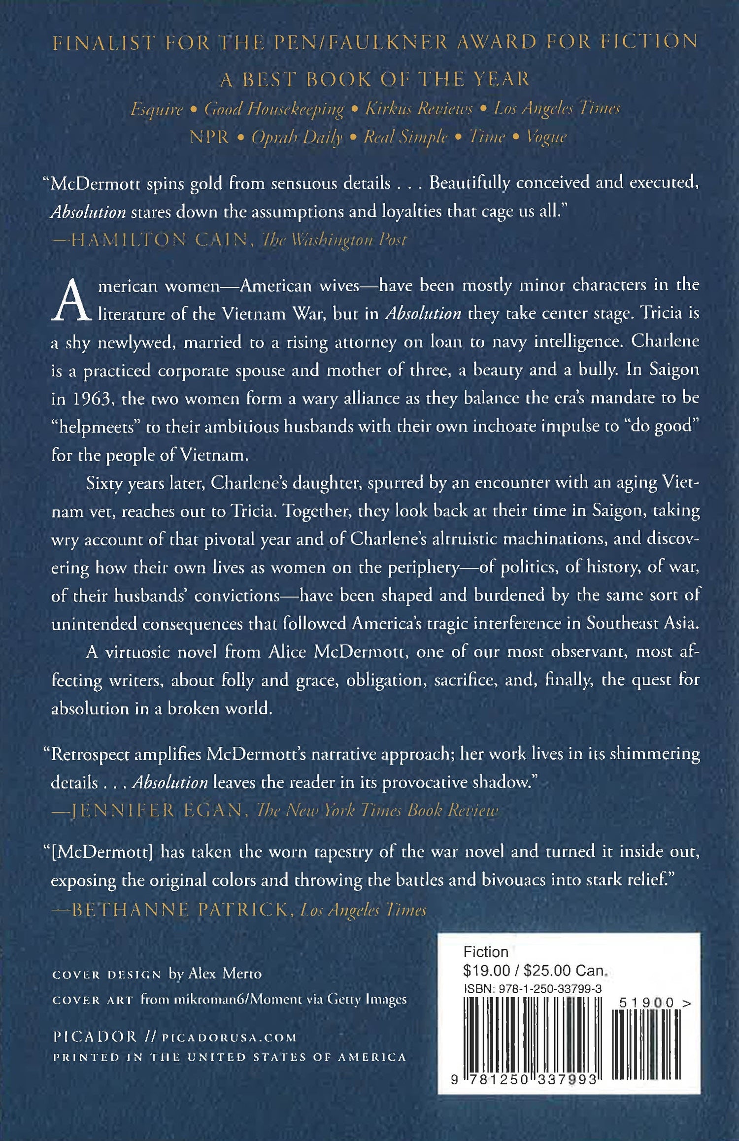 American women―American wives―have been mostly minor characters in the literature of the Vietnam War, but in Absolution they take center stage. Tricia is a shy newlywed, married to a rising attorney on loan to navy intelligence. Charlene is a practiced corporate spouse and mother of three, a beauty and a bully. In Saigon in 1963, the two women form a wary alliance as they balance the era’s mandate to be “helpmeets” to their ambitious husbands with their own inchoate impulse to “do good” for the people of Vietnam.