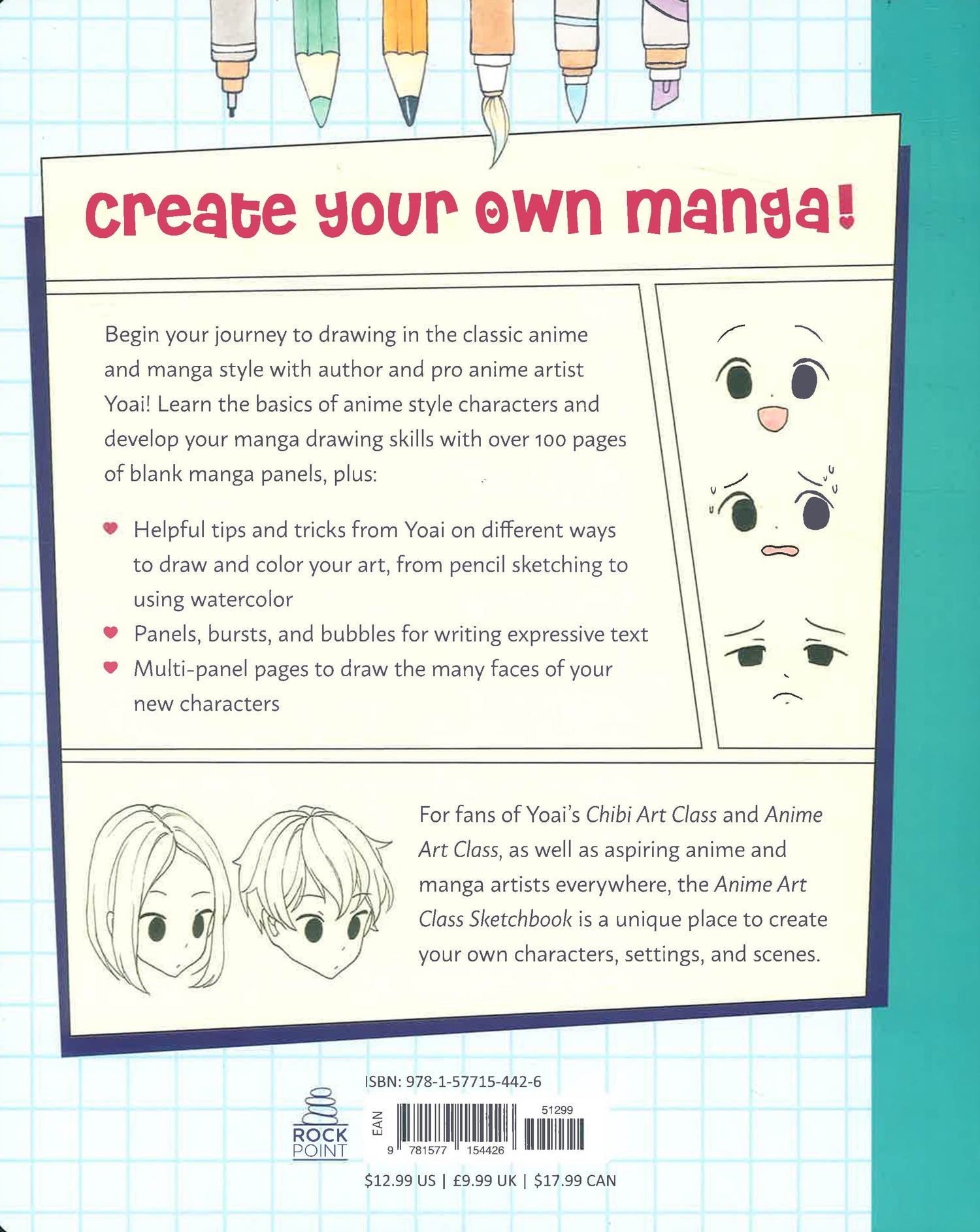 For fans of Yoai’s Chibi Art Class and Anime Art Class, as well as aspiring anime and manga artists everywhere, the Anime Art Class Sketchbook is a unique place to create your own characters, settings, and scenes. Start drawing today―your inner artist will thank you!