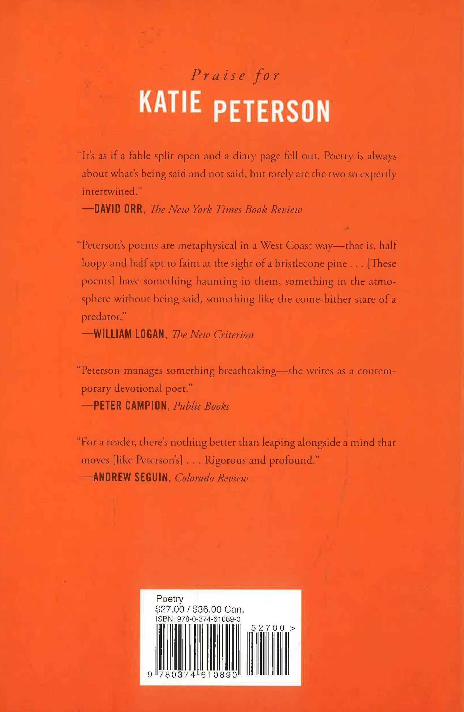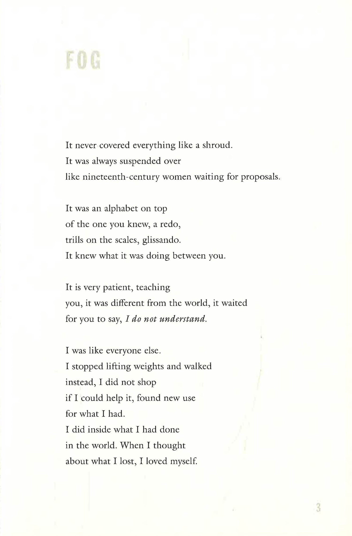 Confusion frames the human predicament. In Katie Peterson’s Fog and Smoke, confusion is, literally, our climate. Writing to and from the California landscape, Peterson sees fog and smoke as literal―one a habitual, natural weather event, the other an increasingly common aftereffect of the West’s drought-caused fires. But they are also metaphysical. Fog and smoke reflect the true conditions (and frustrations) of our ability to perceive and to connect. Peterson writes, “I’ve been speaking about it at a distance. / Now I want to talk about its thickness. / A person could get killed in here.”