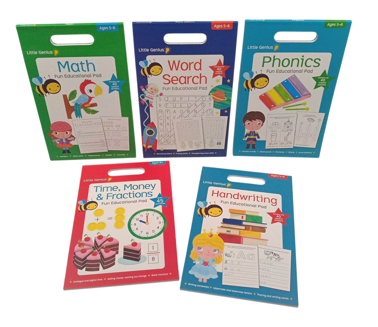 Make learning fun for your little genius! This easy to-carry pack focuses on key learning concepts. Includes 5 activity pads with a total of 240 activities and 230 reward stickers. Perfect for ages 5-6.