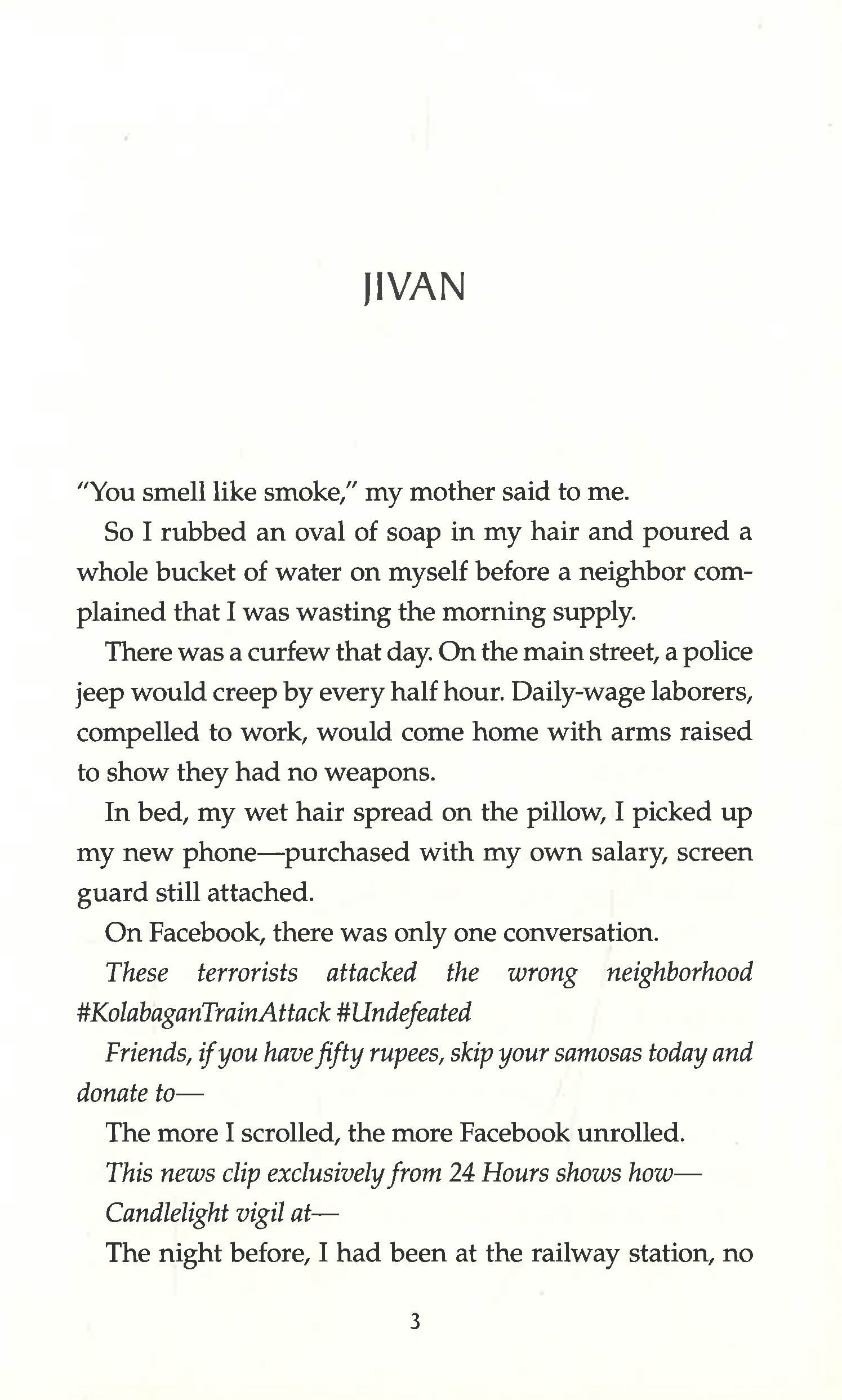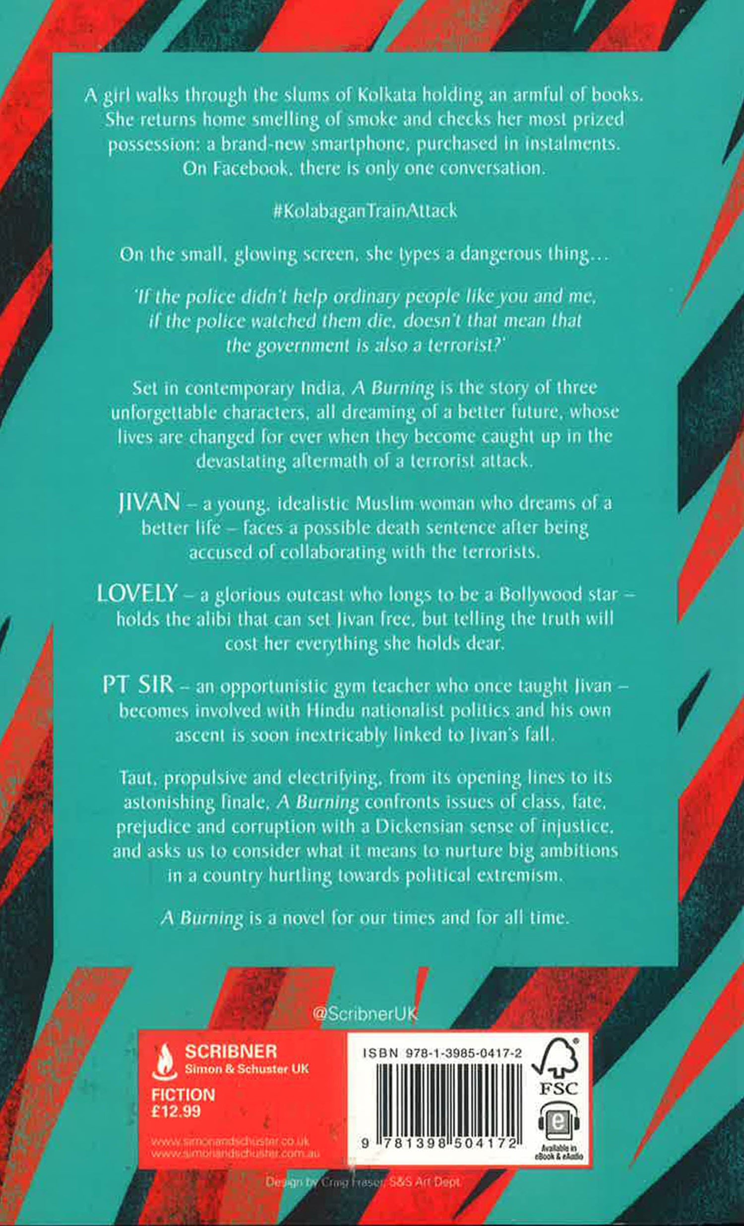 Jivan is a Muslim girl from the slums, determined to move up in life, who is accused of executing a terrorist attack on a train because of a careless comment on Facebook. PT Sir is an opportunistic gym teacher who hitches his aspirations to a right-wing political party, and finds that his own ascent becomes linked to Jivan's fall. Lovely--an irresistible outcast whose exuberant voice and dreams of glory fill the novel with warmth and hope and humor--has the alibi that can set Jivan free, but it will cost her everything she holds dear.
