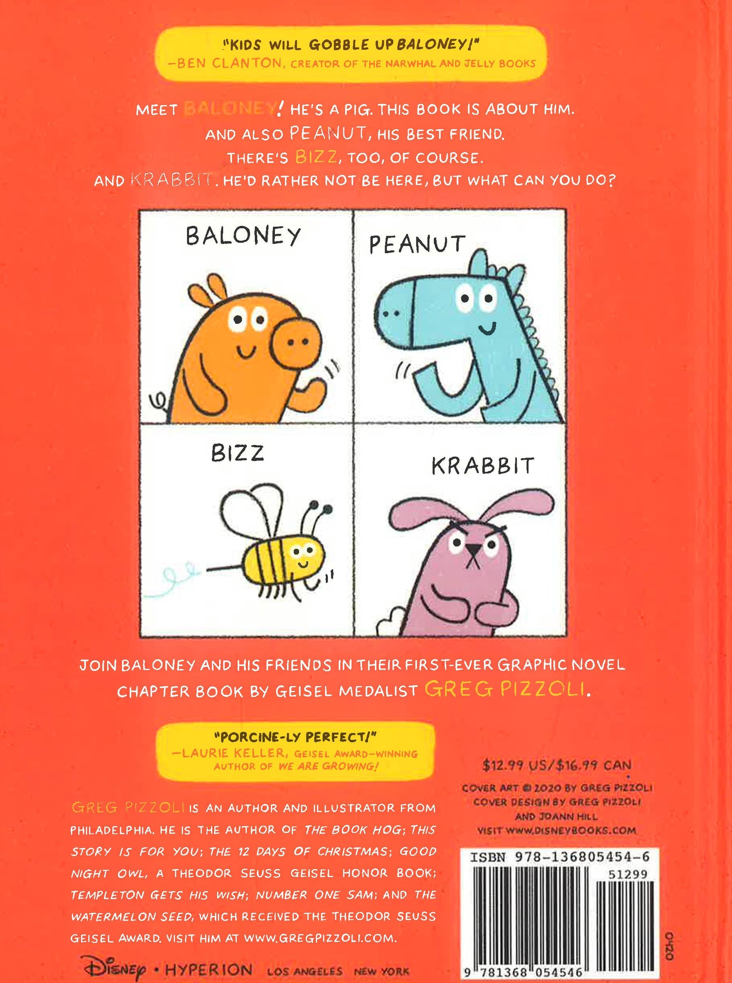 Meet Baloney! He's the star of this book, along with his best buddies: empathetic Peanut the horse, sensible Bizz the bumblebee, and grumpy Krabbit--he'd rather not be here, but what can you do? In this graphic novel for newly independent readers, Baloney and friends step into the spotlight and embody all the charm of childhood in three short tales and three mini-comics that invite readers to join the fun! Giggle with Baloney as he performs some questionable magic, give him a boost when a case of the blues gets him down, cheer him on as he braves the swimming pool, and at the end, learn to draw all the characters with clear step-by-step instructions! "Kids will gobble up Baloney!" --Ben Clanton, creator of Narwhal and Jelly series "Porcine-ly-perfect" --Laurie Keller, Geisel Award-winning author of We Are Growing!