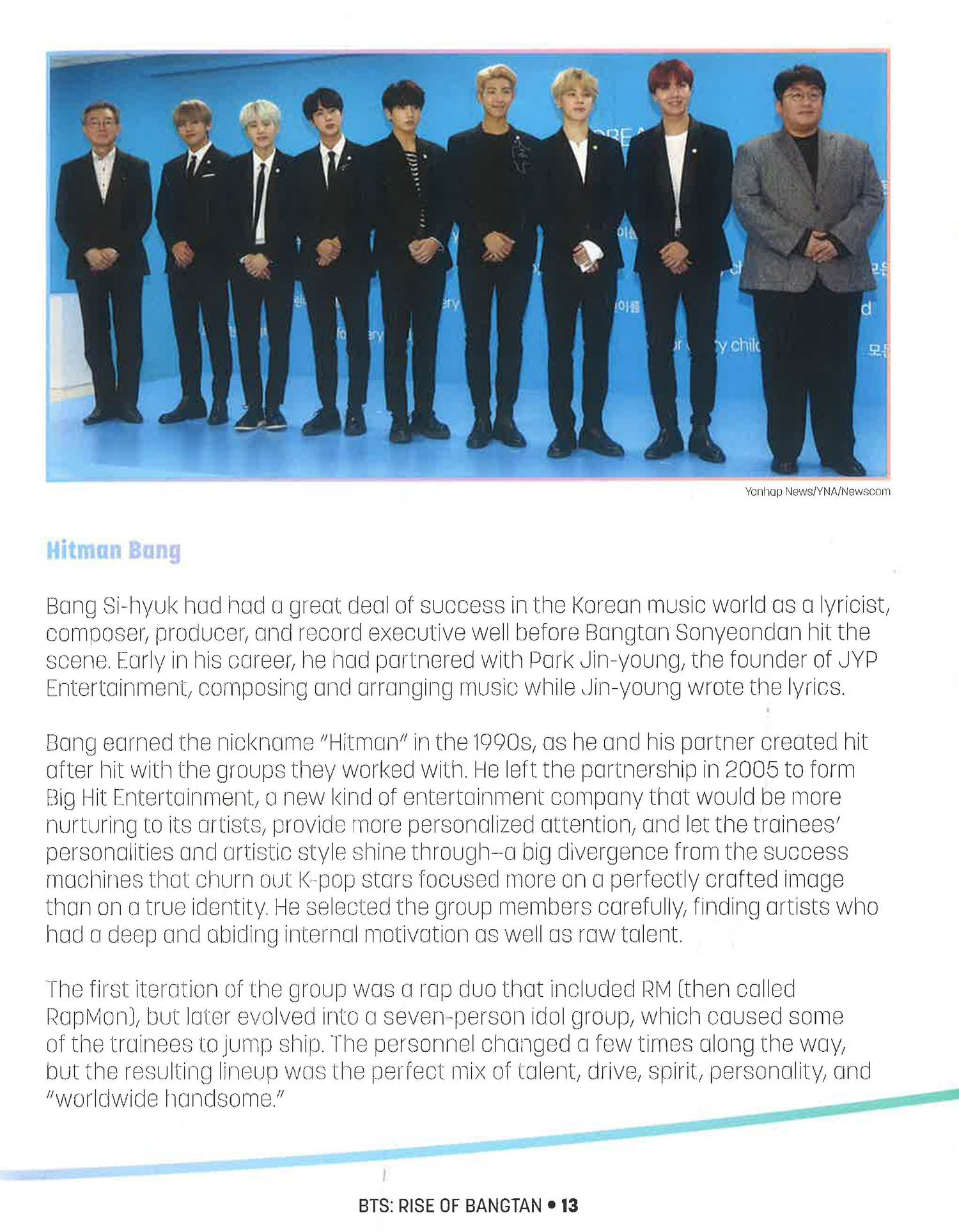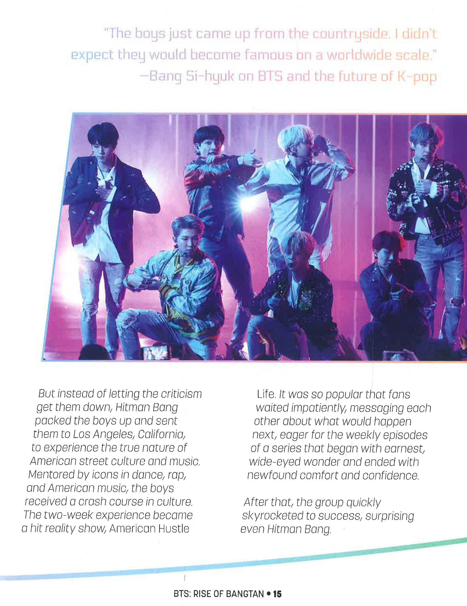 This unofficial biography tells the story of BTS and their global ARMY, which helped propel them to the top of the charts all over the world. Extensively researched, Rise of Bangtan explores the lives of RM, J-Hope, Suga, Jimin, V, Jin, and Jungkook, the story behind how they all got together, and their amazing rise to fame—from their start in East Asia to their dominance across the globe.