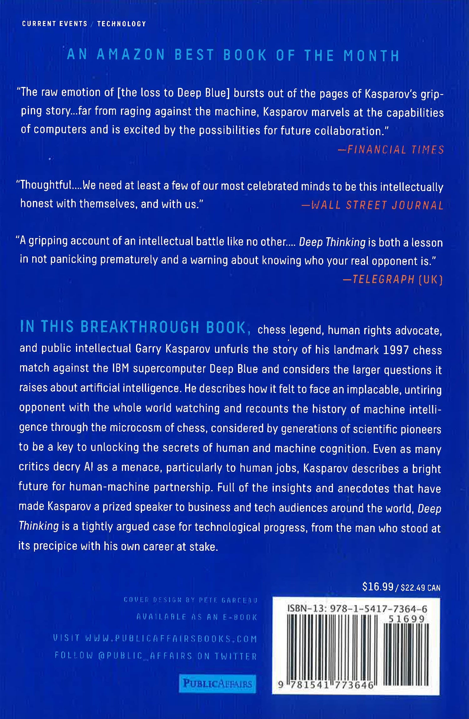 That moment was more than a century in the making, and in this breakthrough book, Kasparov reveals his astonishing side of the story for the first time. He describes how it felt to strategize against an implacable, untiring opponent with the whole world watching, and recounts the history of machine intelligence through the microcosm of chess, considered by generations of scientific pioneers to be a key to unlocking the secrets of human and machine cognition. Kasparov uses his unrivaled experience to look into the future of intelligent machines and sees it bright with possibility. As many critics decry artificial intelligence as a menace, particularly to human jobs, Kasparov shows how humanity can rise to new heights with the help of our most extraordinary creations, rather than fear them. Deep Thinking is a tightly argued case for technological progress, from the man who stood at its precipice with his own career at stake.