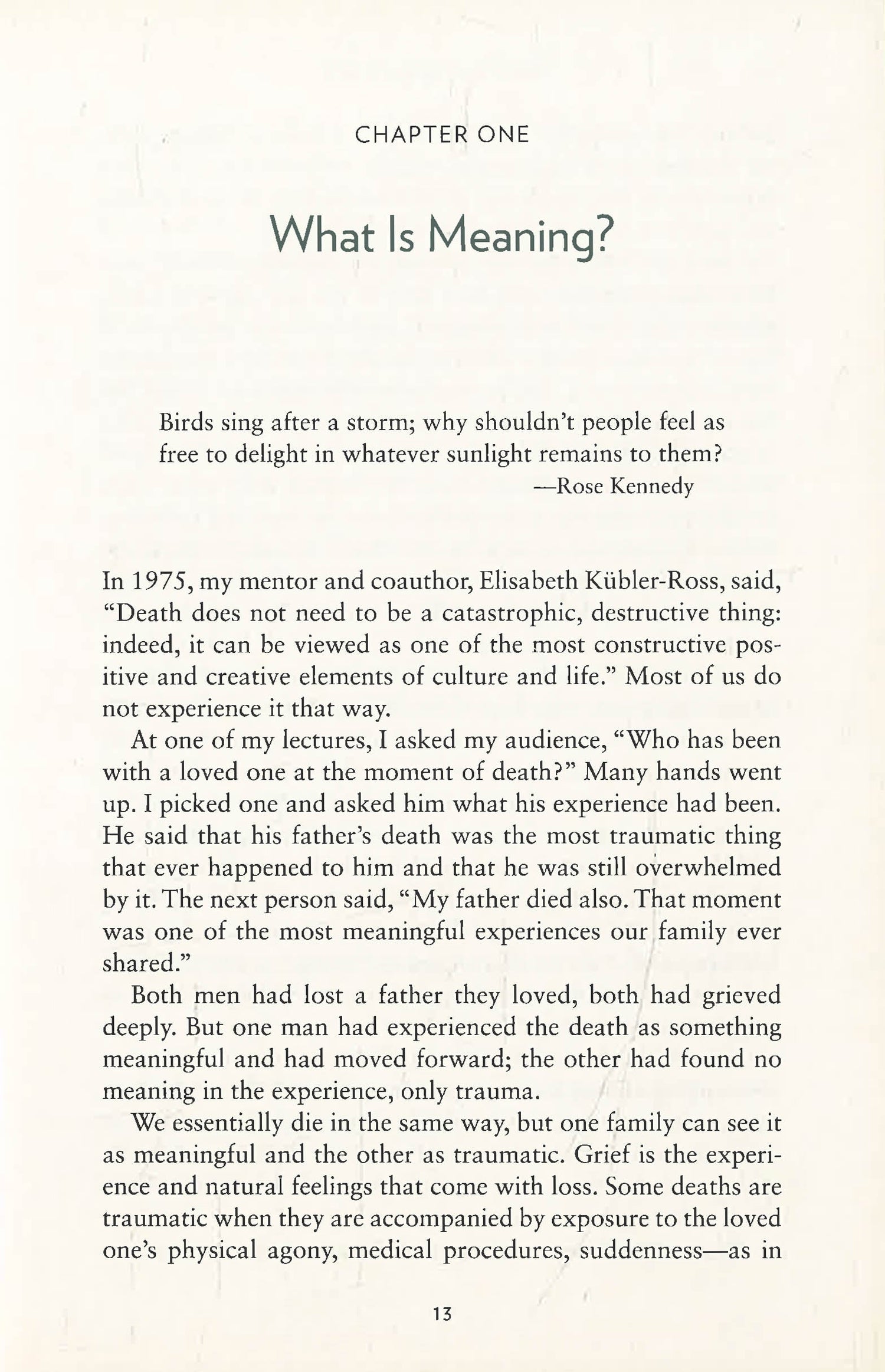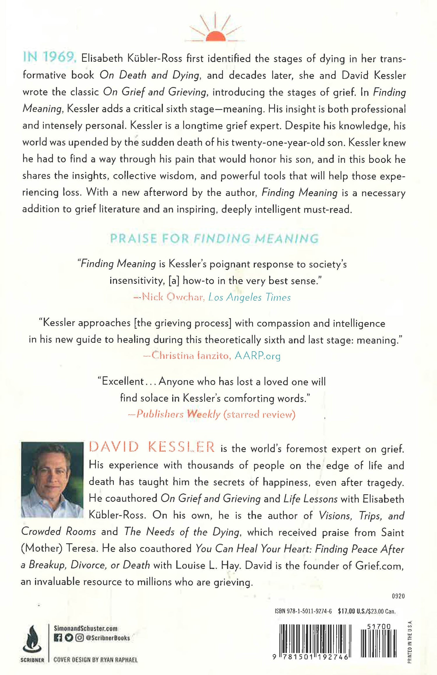Kessler’s insight is both professional and intensely personal. His journey with grief began when, as a child, he witnessed a mass shooting at the same time his mother was dying. For most of his life, Kessler taught physicians, nurses, counselors, police, and first responders about end of life, trauma, and grief, as well as leading talks and retreats for those experiencing grief. Despite his knowledge, his life was upended by the sudden death of his twenty-one-year-old son. How does the grief expert handle such a tragic loss? He knew he had to find a way through this unexpected, devastating loss, a way that would honor his son. That, ultimately, was the sixth stage of grief—meaning. In Finding Meaning, Kessler shares the insights, collective wisdom, and powerful tools that will help those experiencing loss.