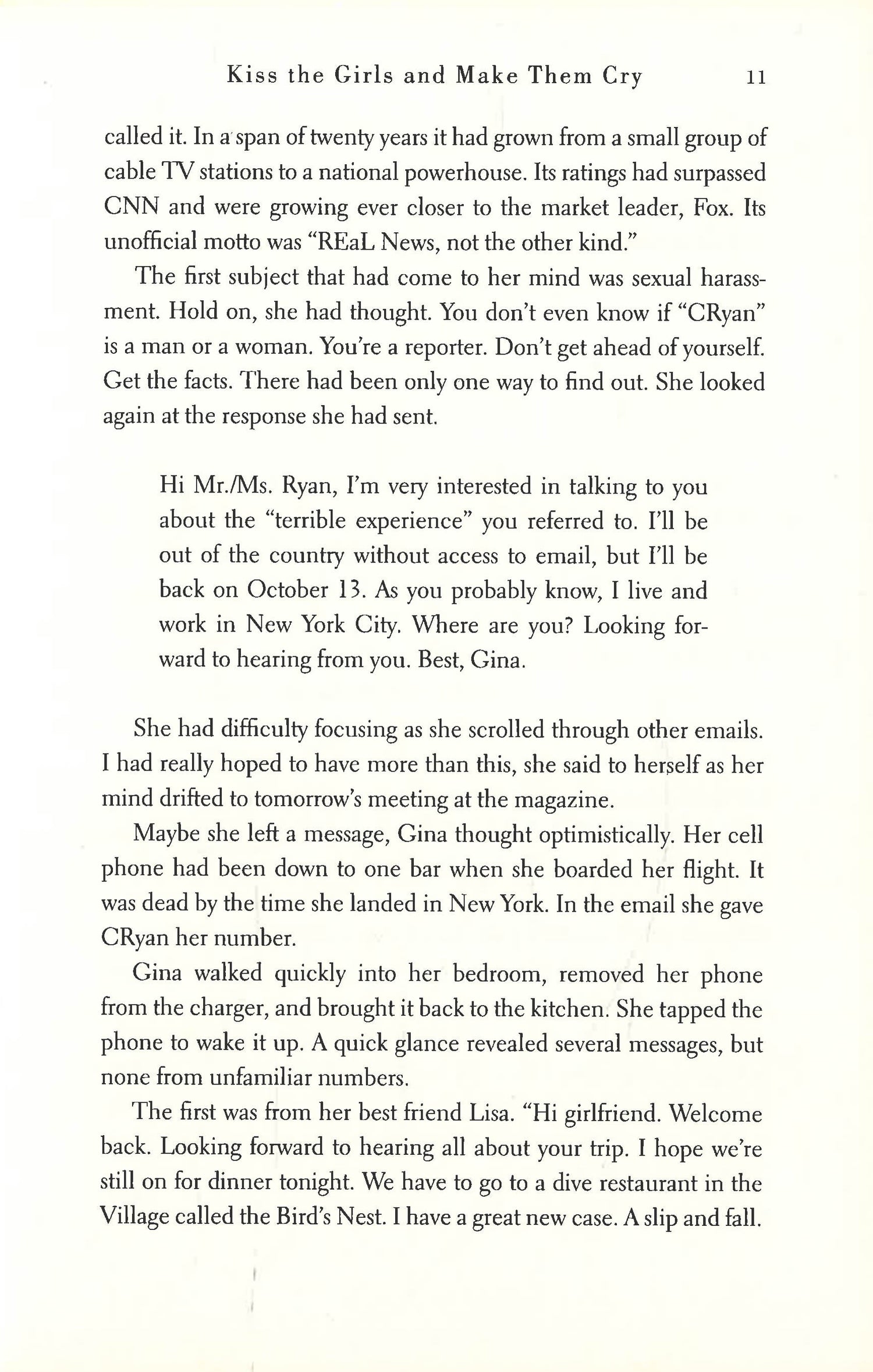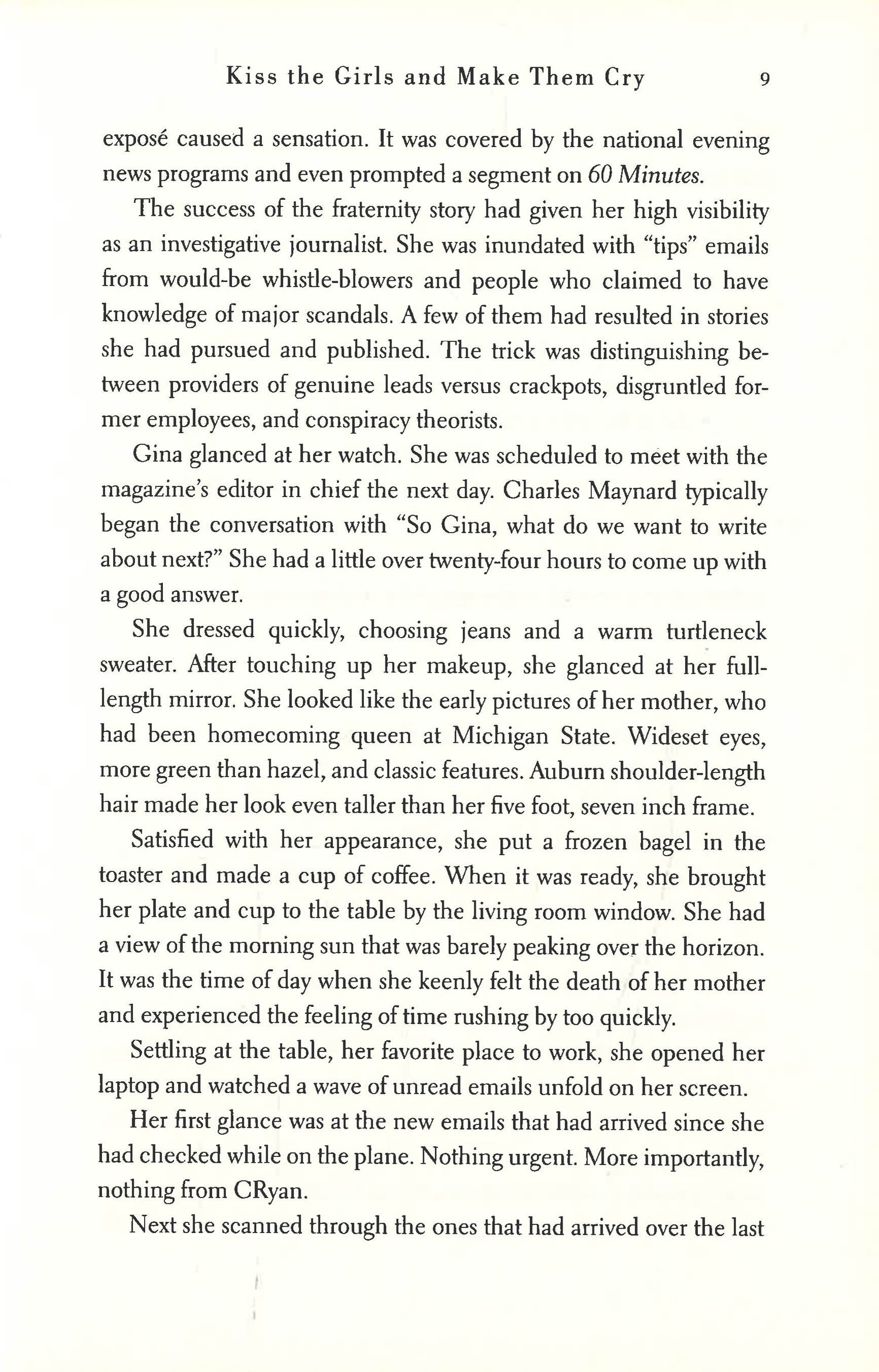 As more allegations emerge and the company’s IPO draws near, Carter’s attempts to keep the story from making headlines are matched only by Gina Kane’s determination to uncover the truth. Was Ryan’s death truly an accident? And when another accuser turns up dead, Gina realizes someone―or some people―will go to depraved lengths to keep the story from seeing the light.