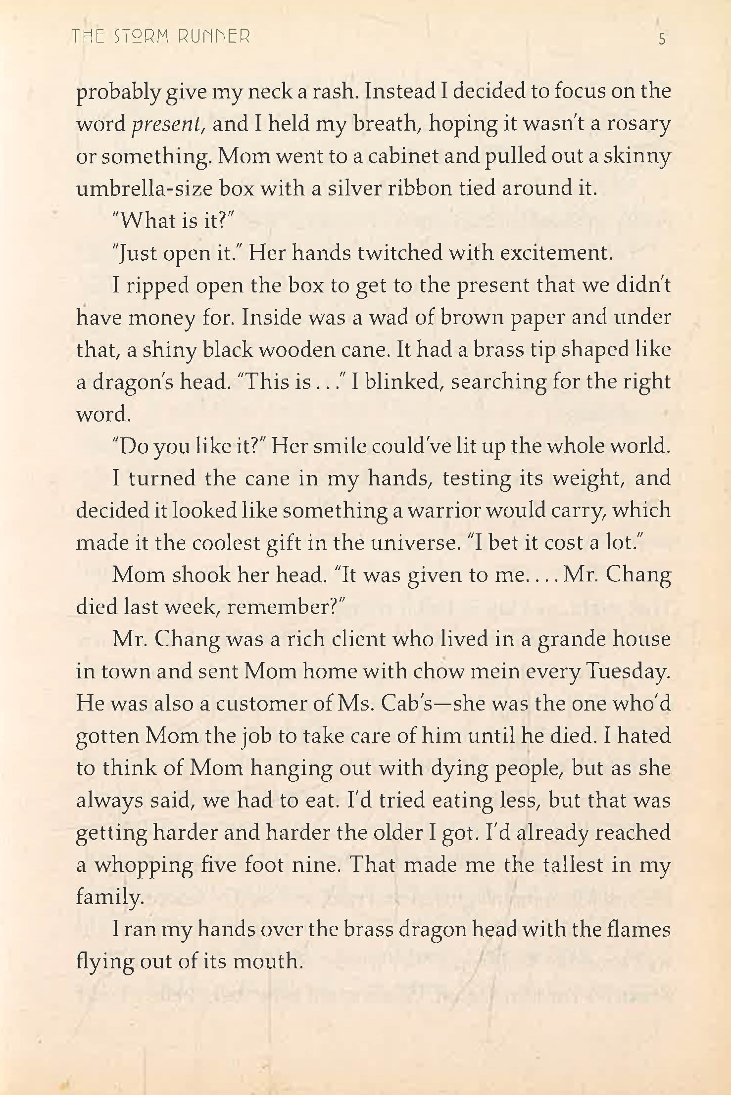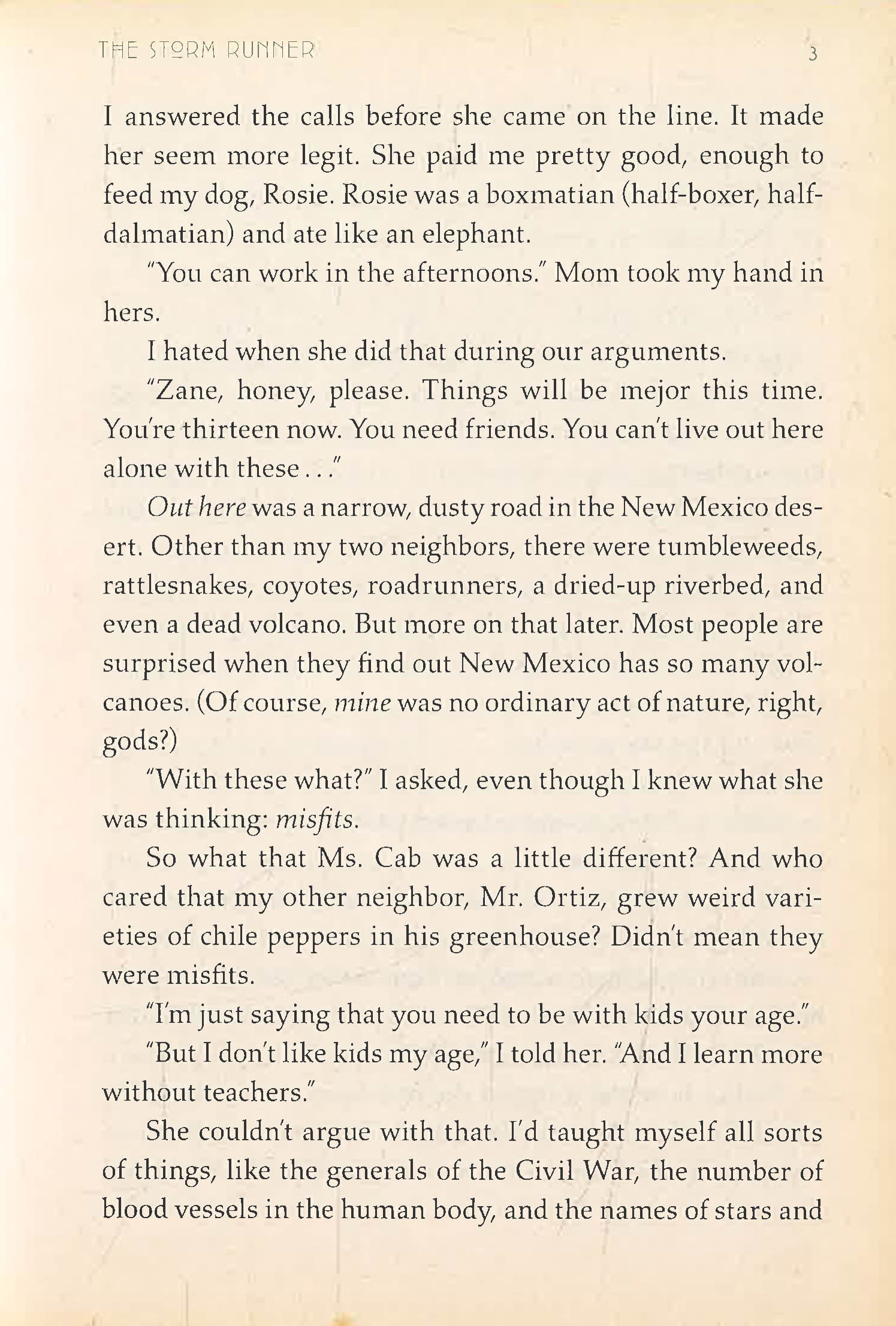 When Zane decides to save his dog no matter the cost, he is thrust into an adventure full of surprising discoveries, dangerous secrets, and an all-out war between the gods, one of whom happens to be his father. To survive, Zane will have to become the Storm Runner. But how can he run when he can't even walk well without a cane?