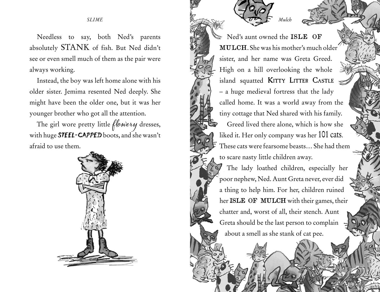 This little island is home to a large number of horrible grown-ups. The school, the local park, the toy shop and even the island’s ice-cream van are all run by awful adults who like nothing more than making children miserable. And the island is owned by the most awful one of all – Aunt Greta Greed!
