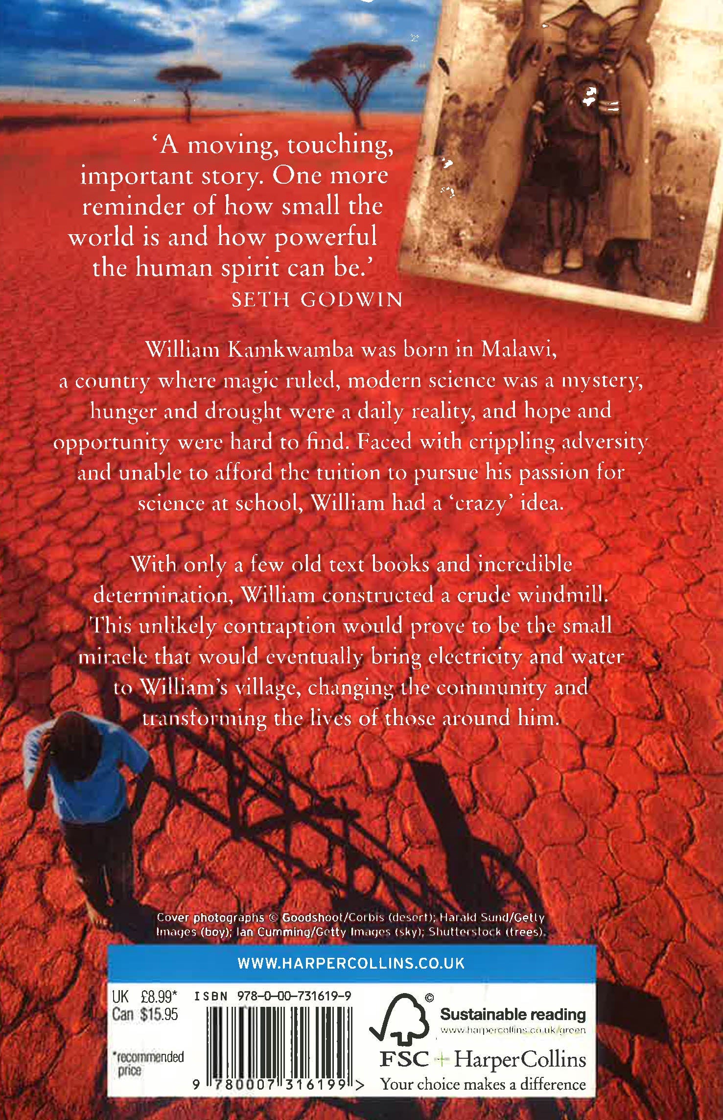 When William Kamkwamba was just 14 years old, his family told him that he must leave school and come home to work on the farm – they could no longer afford his fees. This is his story of how he found a way to make a difference, how he bought light to his family and village, and hope to his nation.