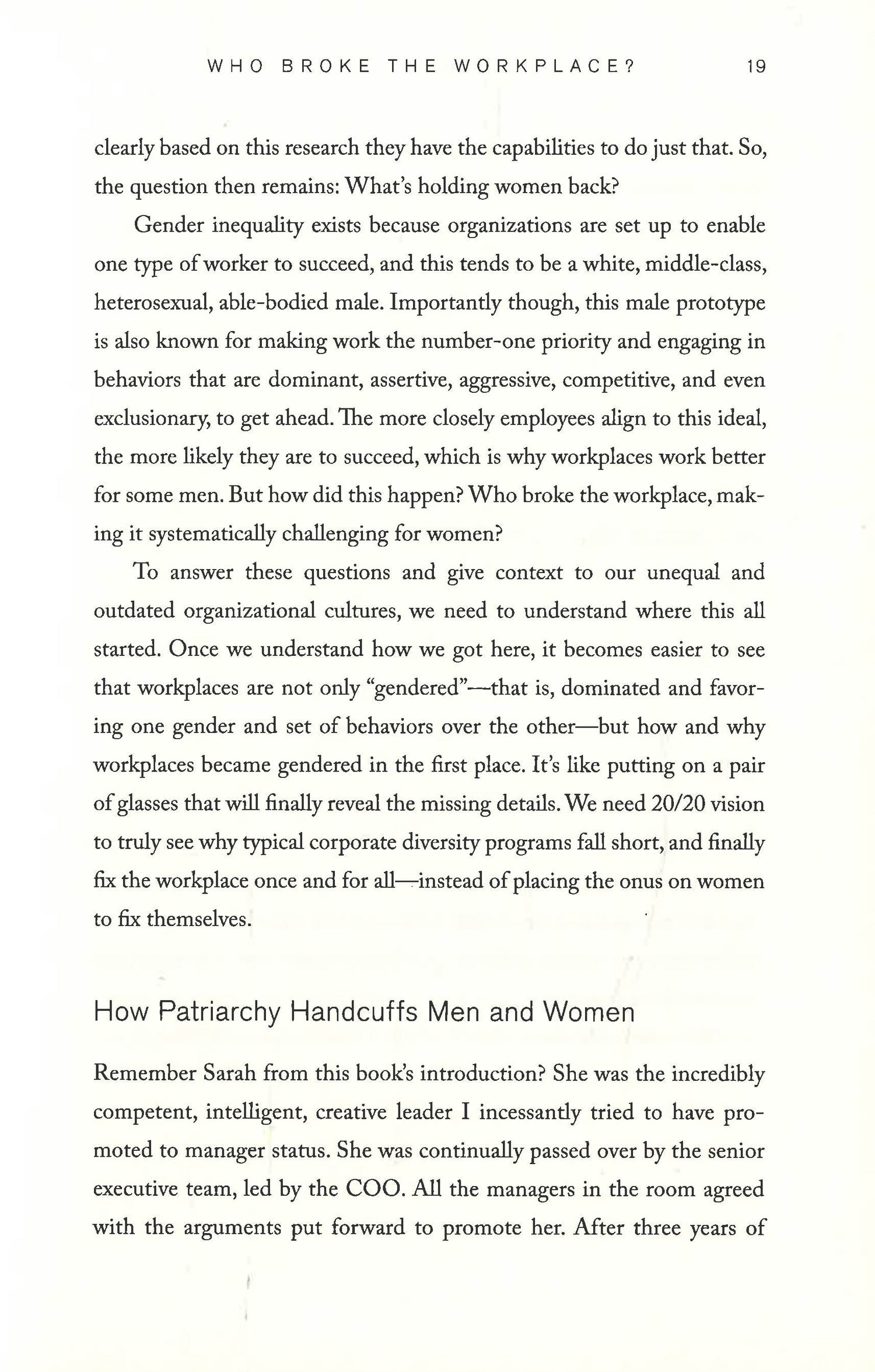 For years, we’ve been telling women that in order to succeed at work, they have to change themselves first - lean in, negotiate like a man, don’t act too nicely or you won't get the corner office. But after sixteen years working with major Fortune 500 companies as a gender equality expert, Michelle King has realised one simple truth - the tired advice of fixing women doesn’t fix anything.
