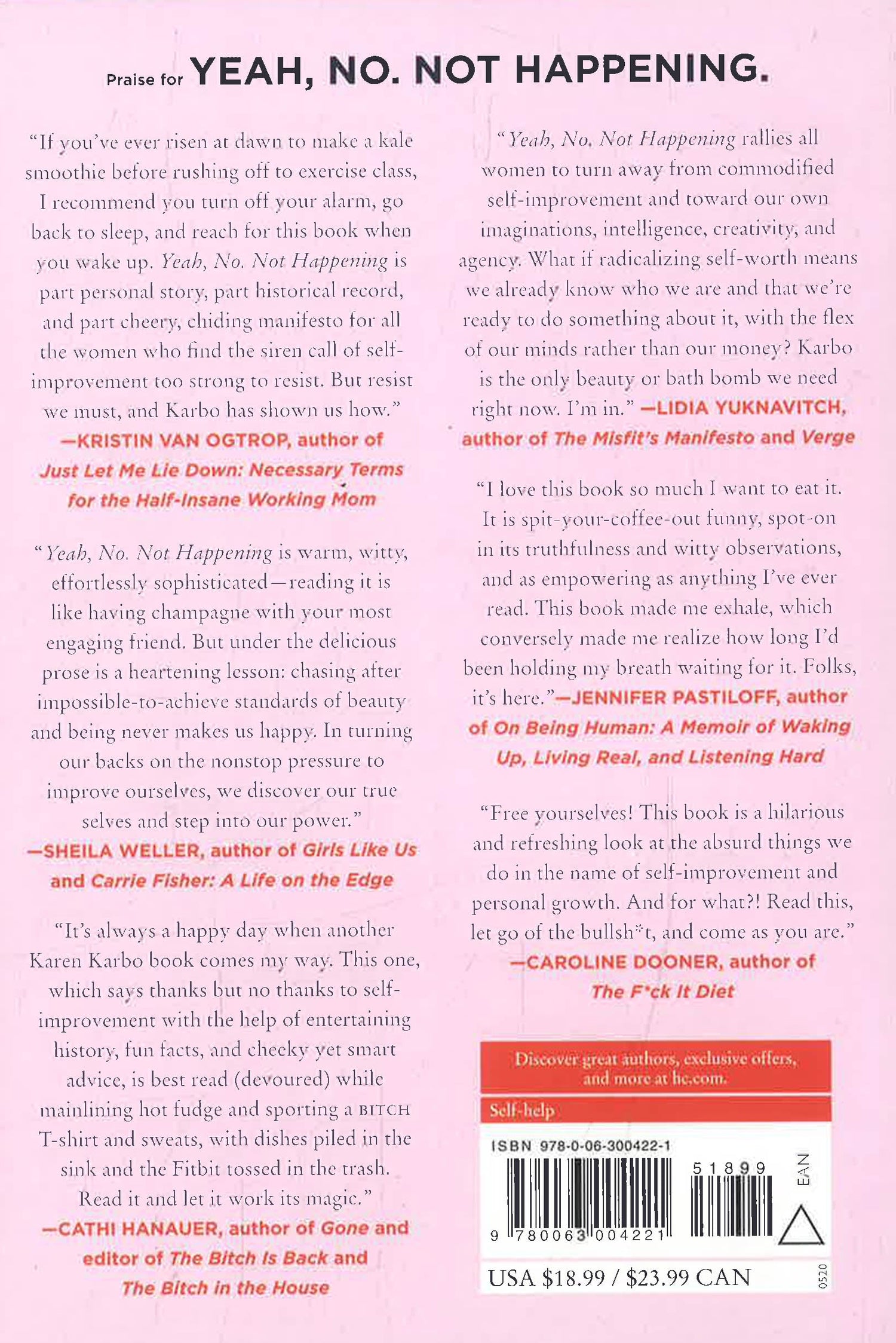 There is no one more dangerous than a woman who doesn’t care what anyone thinks of her. Yeah, No, Not Happening is a call to arms to build a posse of dangerous women who swear off self-improvement and its peddlers. A welcome corrective to our inner-critic, Karbo’s manifesto will help women restore their sanity and reclaim their self-worth.