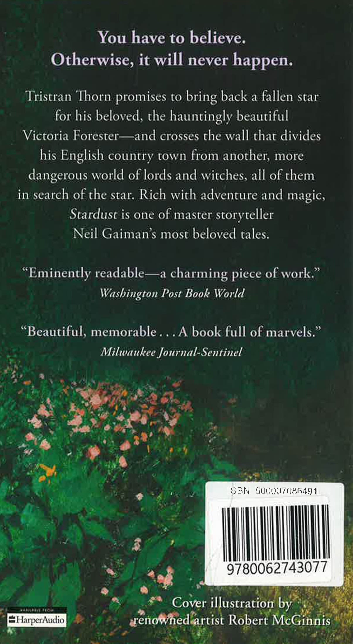 Tristran Thorn promises to bring back a fallen star for his beloved, the hauntingly beautiful Victoria Forester—and crosses the wall that divides his English country town from another, more dangerous world of lords and witches, all of them in search of the star. Rich with adventure and magic, Stardust is one of master storyteller Neil Gaiman's most beloved tales.