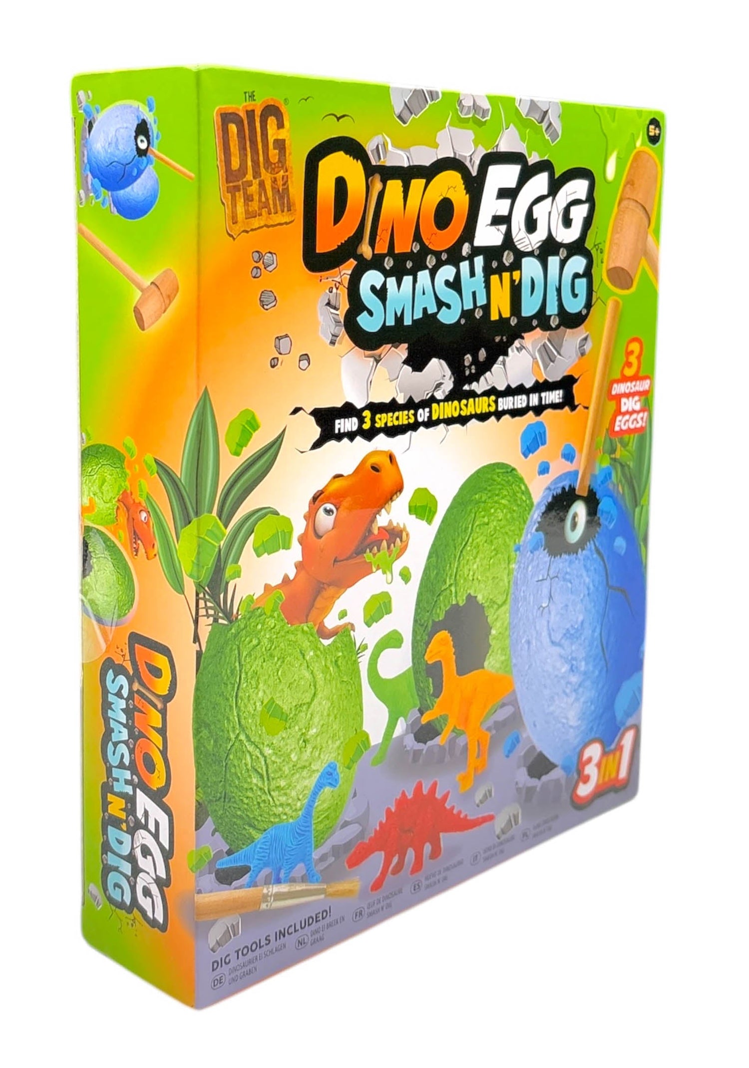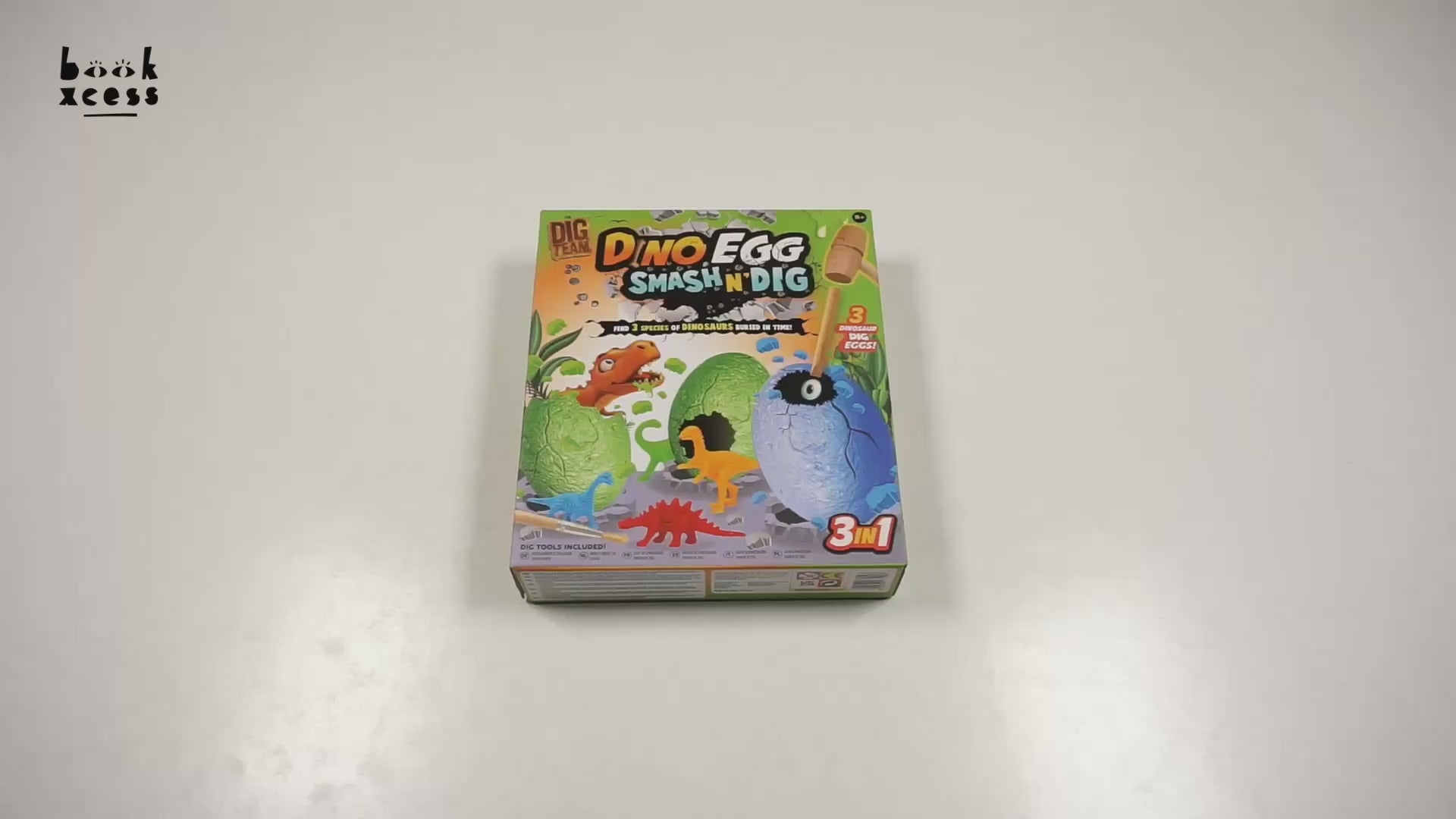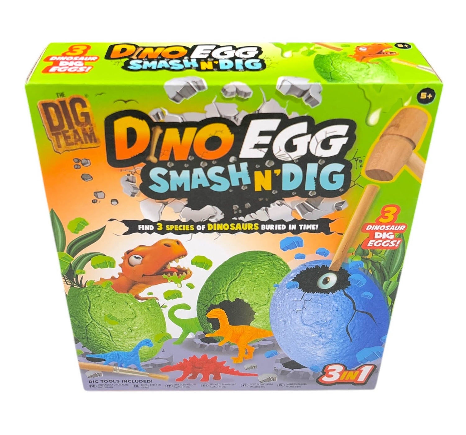 Age 5+ Box Set Contains - 3 Dino Eggs 1 Brush Tool 1 Chisel 1 Smash Hammer 3 Hidden Dinosaurs 1 Instruction Sheet.