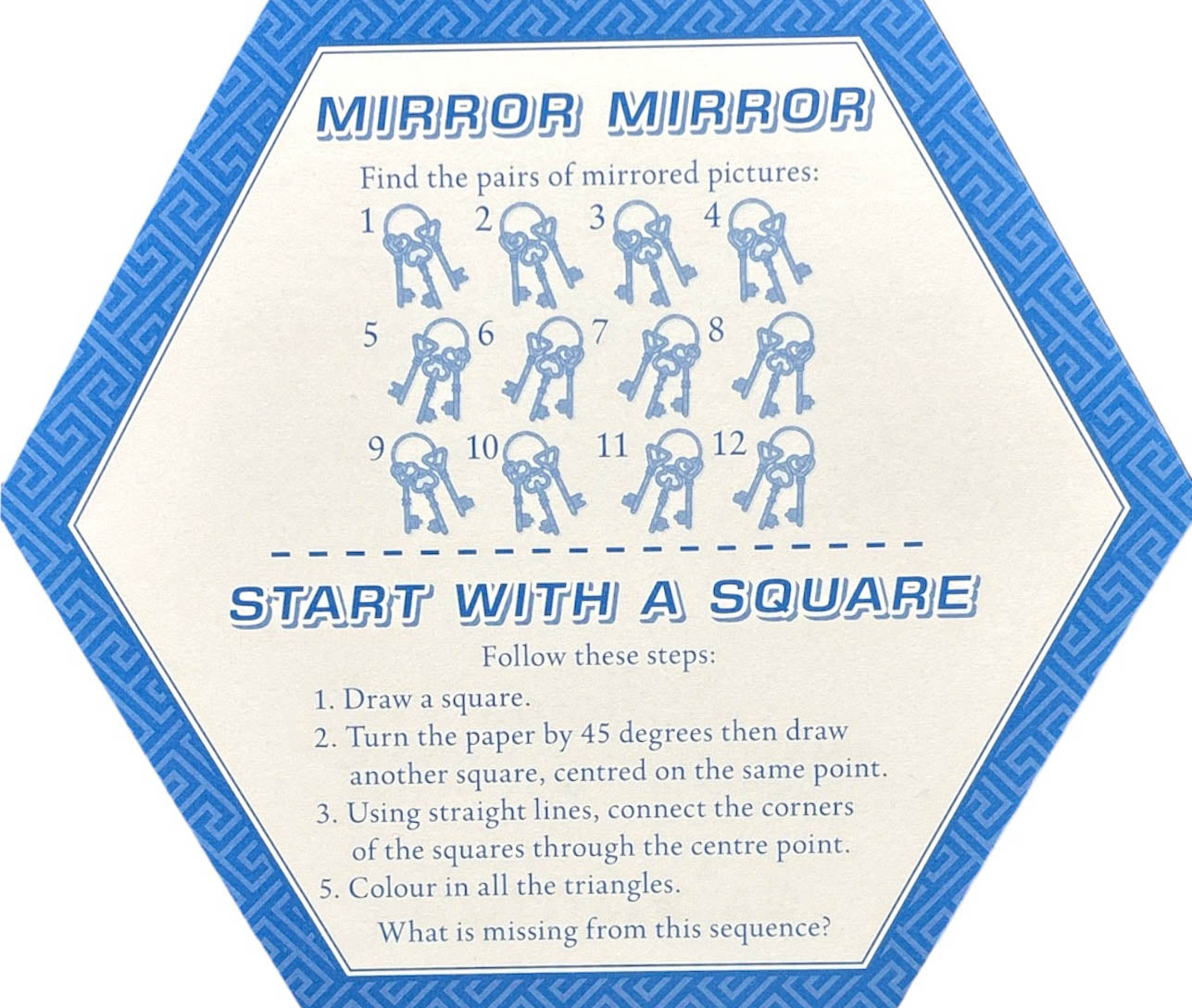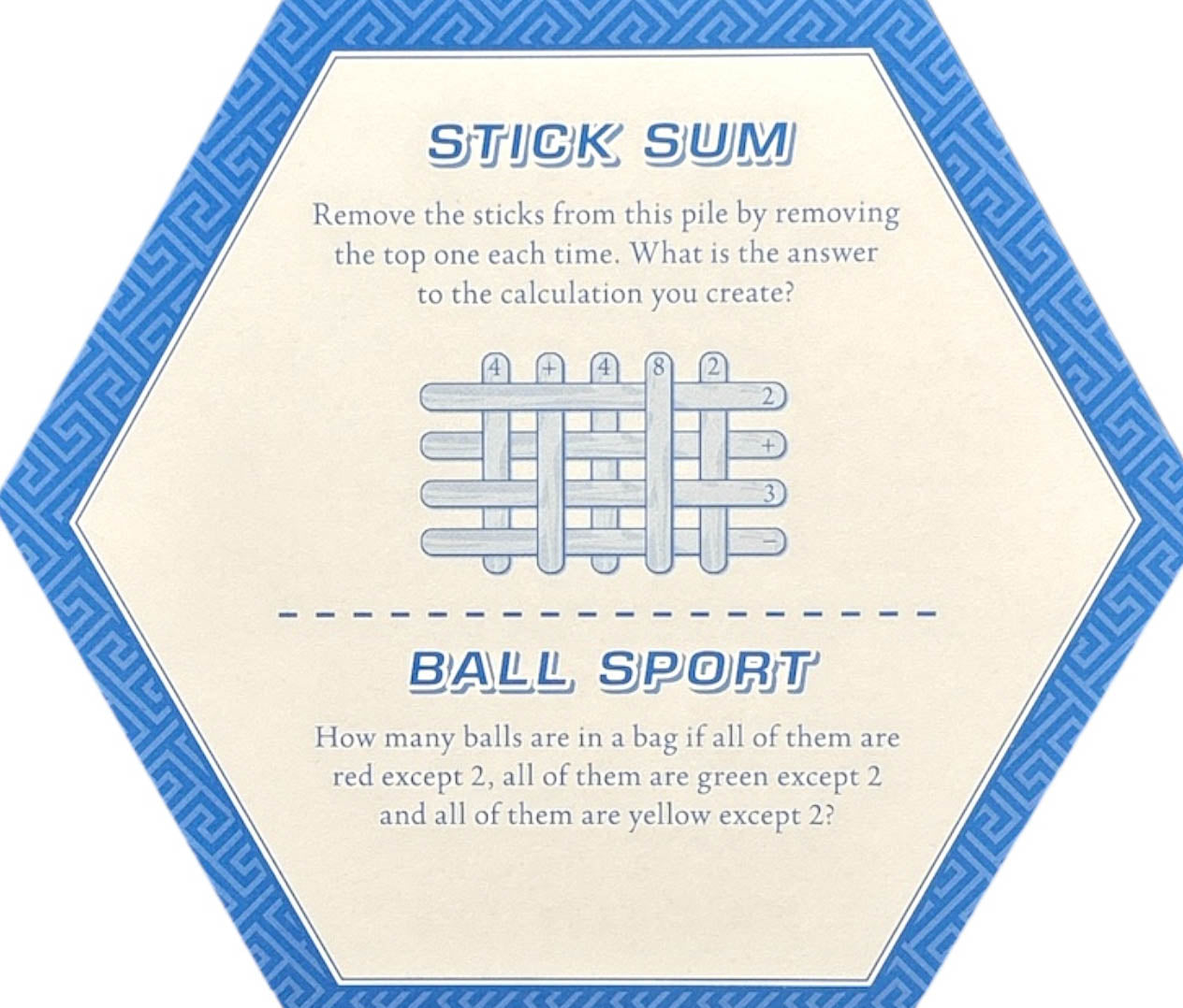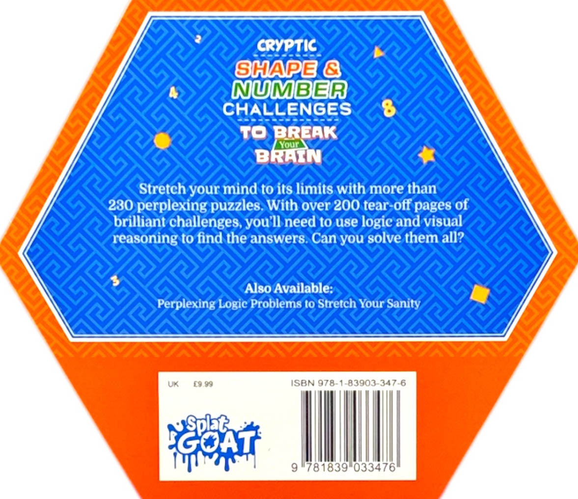 How can eight 8s equal 1,000? Every page in this hexagon-shaped book features two or three challenges, including number sequences, visual challenges, equations and maths problems, with solutions on the reverse. Detachable pages.