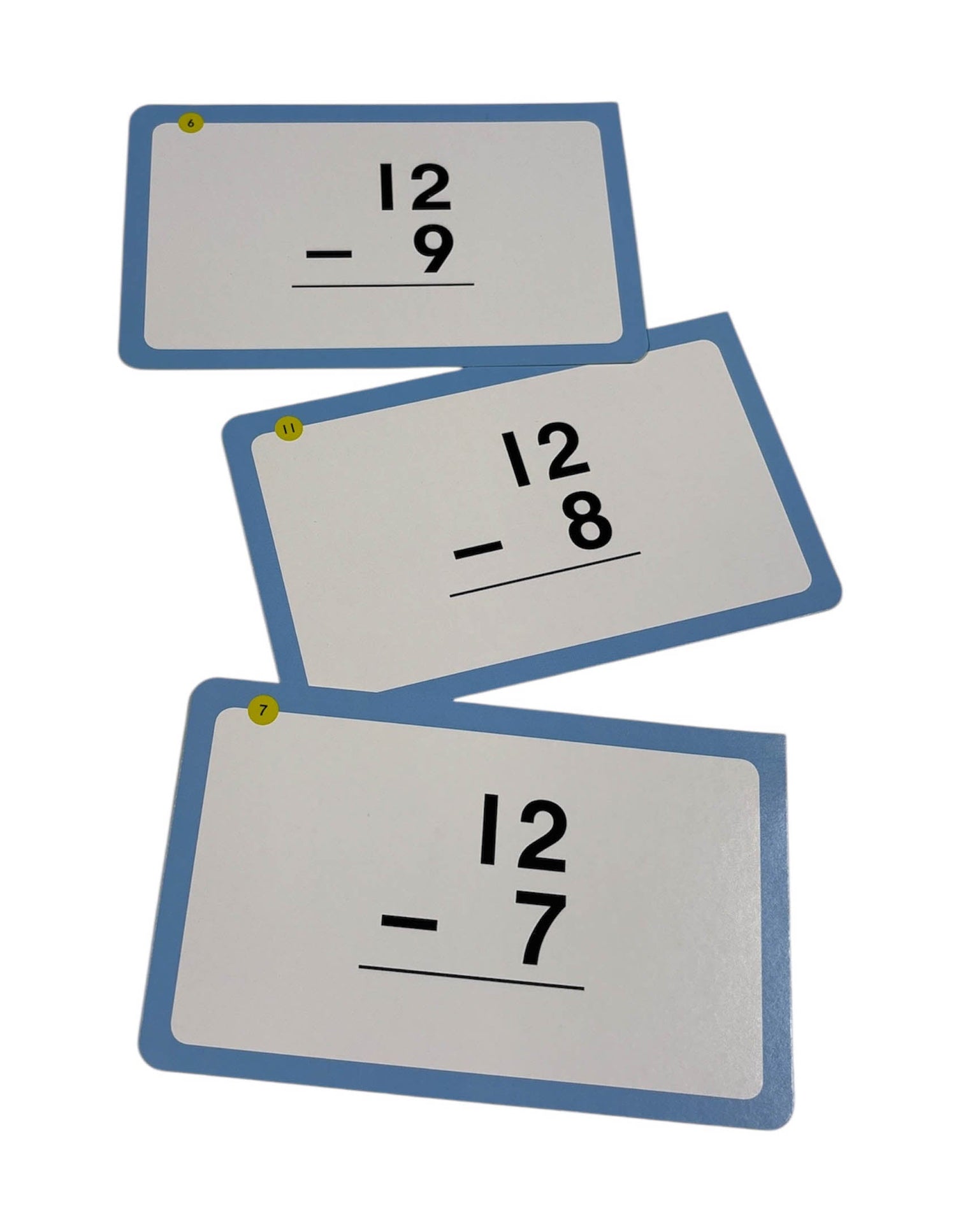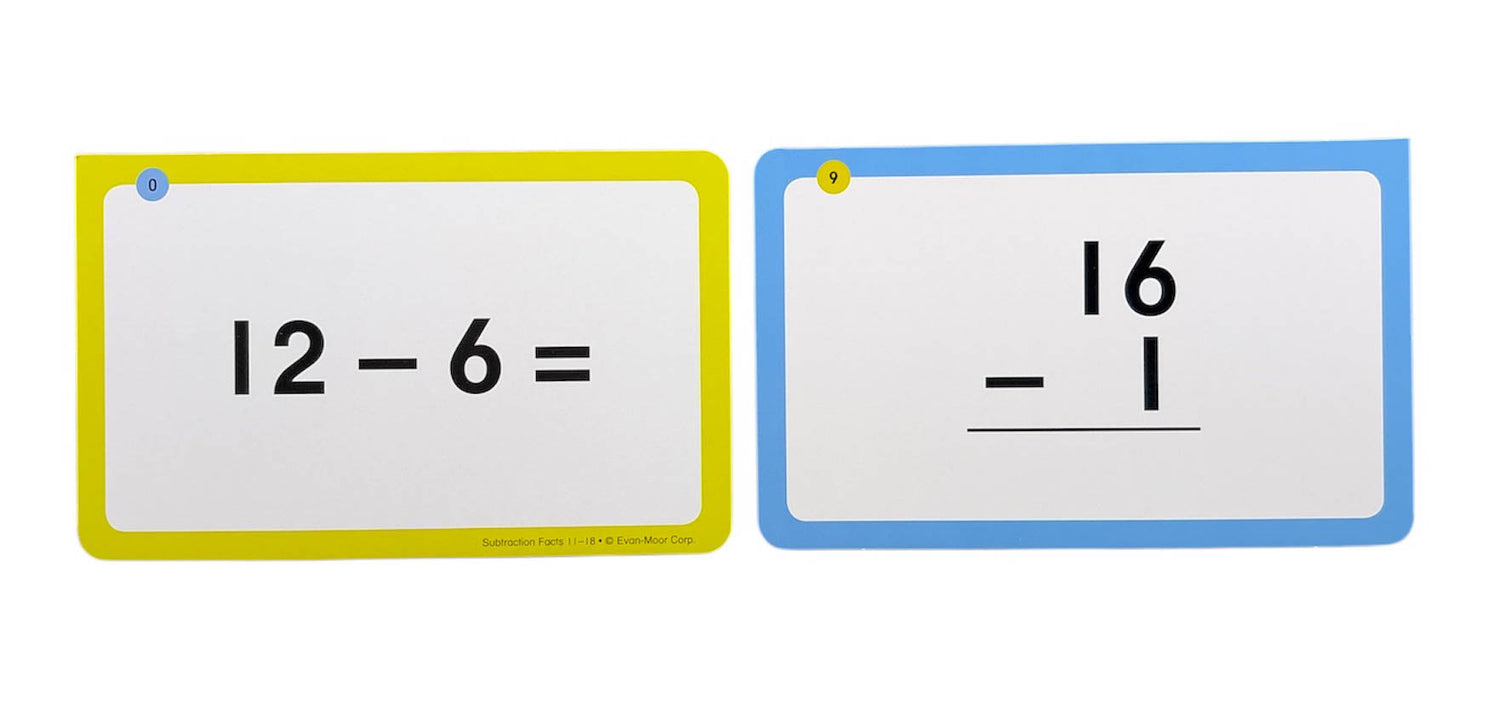 Sharpen math skills with flashcard fun! This set provides practice of subtraction facts from 11 to 18, and includes vertical and horizontal versions of each equation for optimal practice. Pair with Learning Line activity books. Grades 15