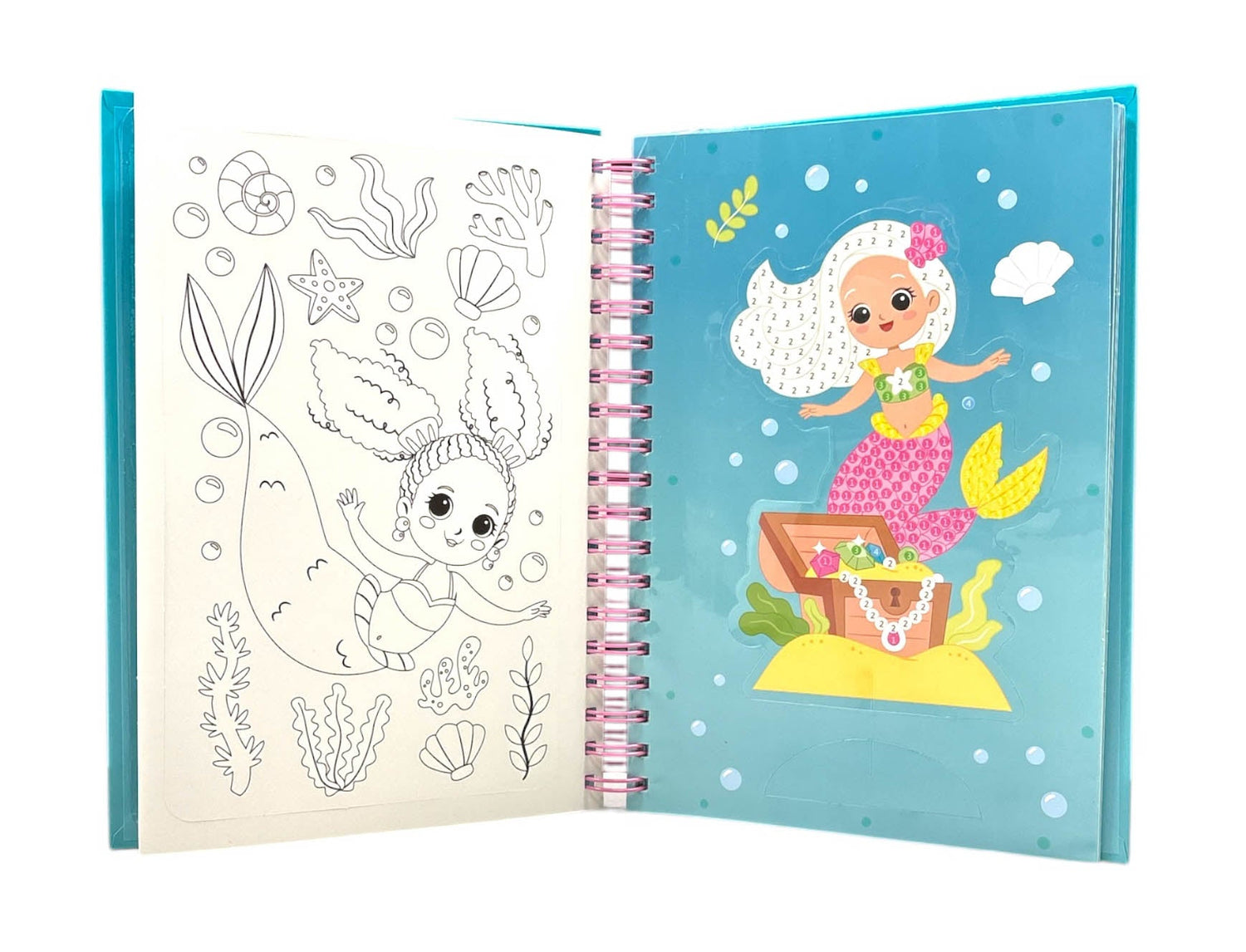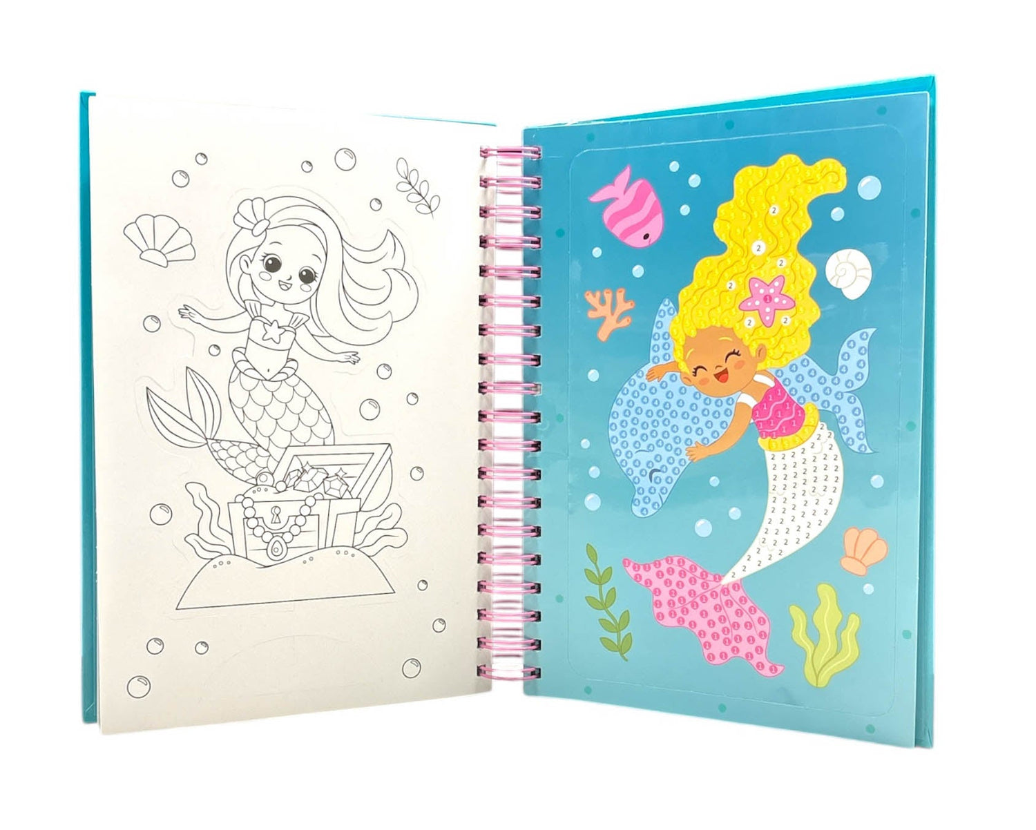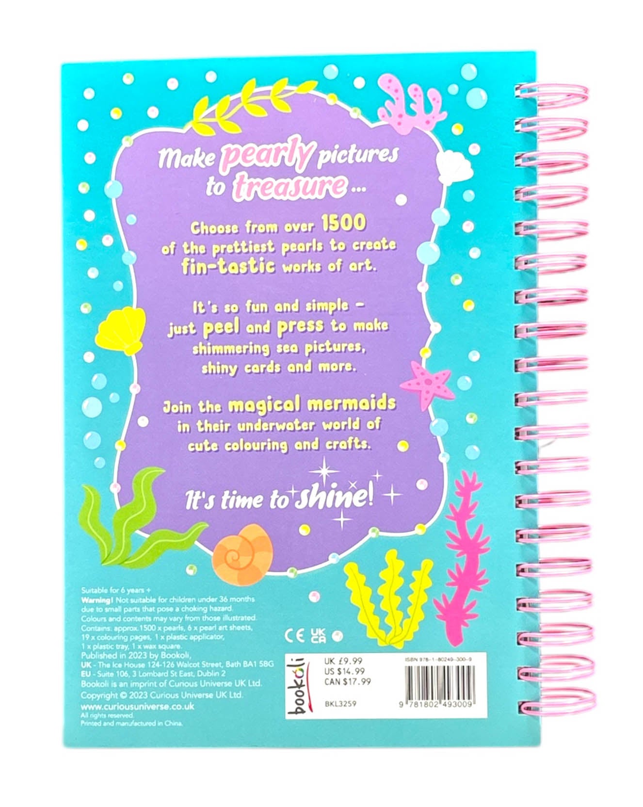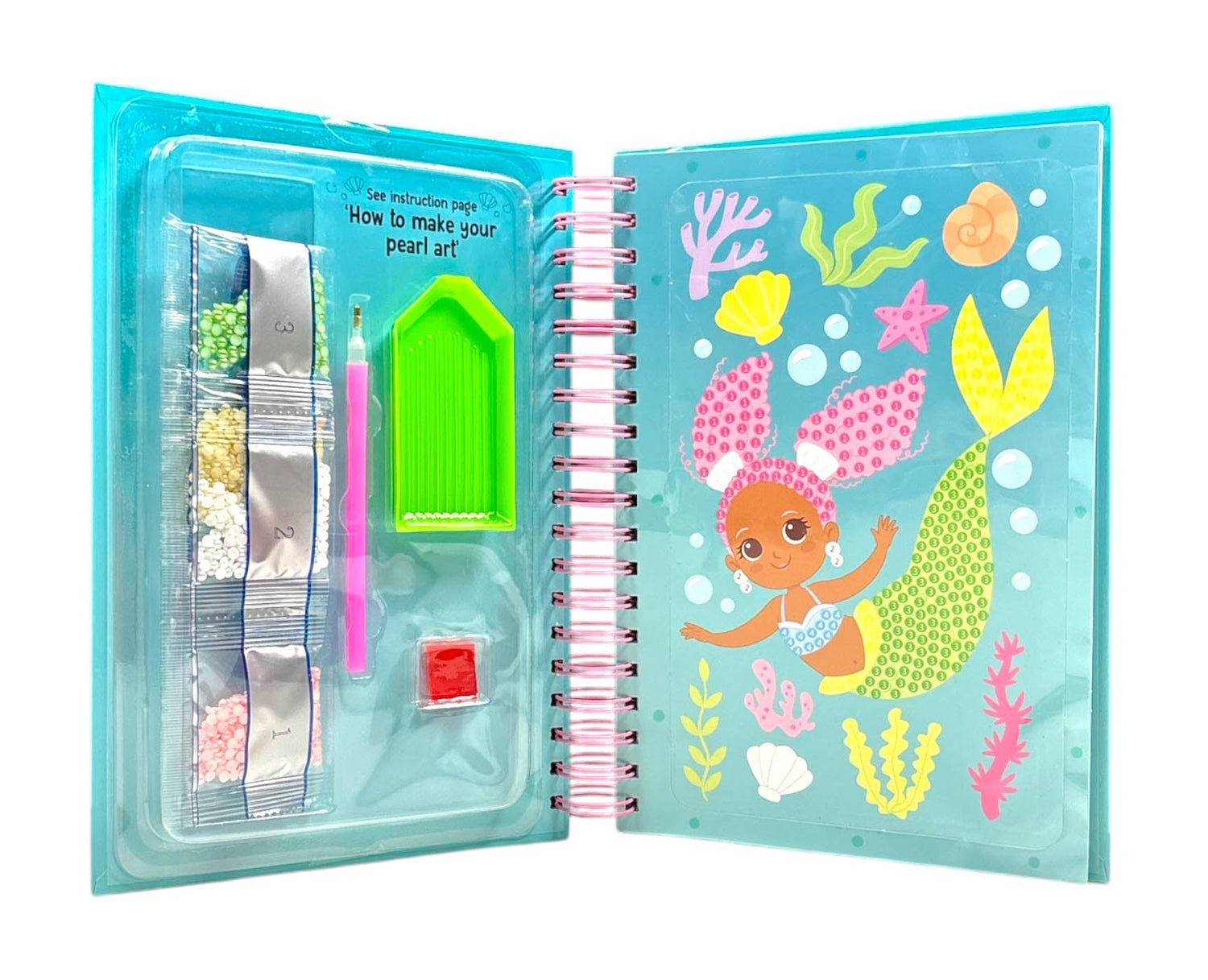 - COMPLETE ARTS AND CRAFT BOOK: Included within the book are 6 designs to customise with crystals plus 20 pages of fun colouring-in. As well as over 1,500 shimmering pastel pearls, 1 crystal stylus, 1 xsilcone gum square and a tray for pearl storage. Join the magical mermaids in their underwater world of cute colouring and crafts.