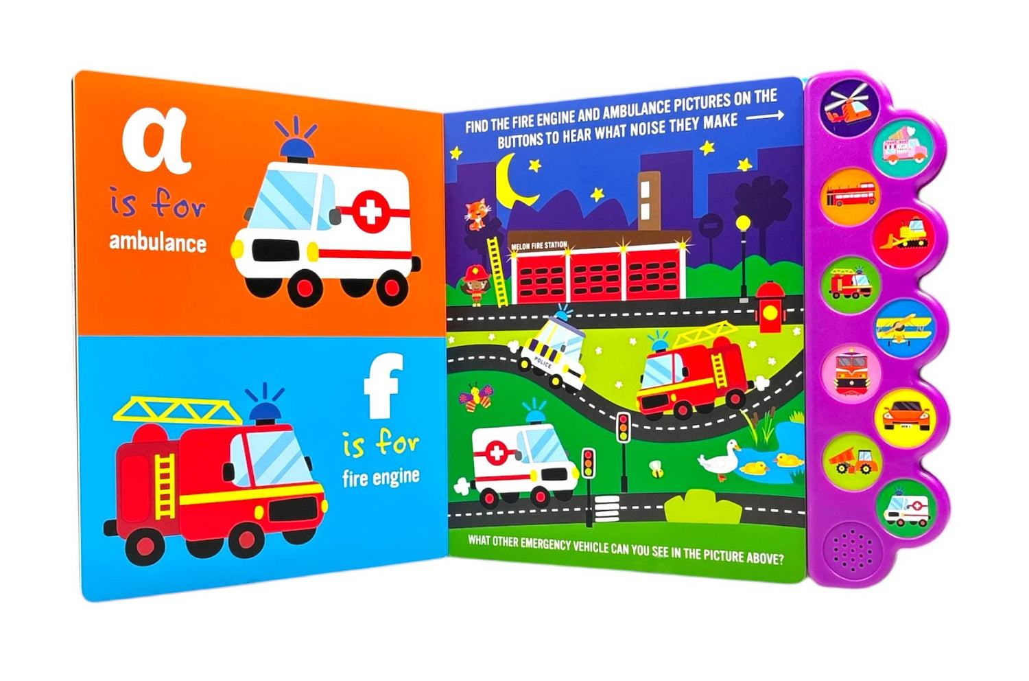 Babies will love discovering the noises of cars, trains, planes, helicopters, and more!