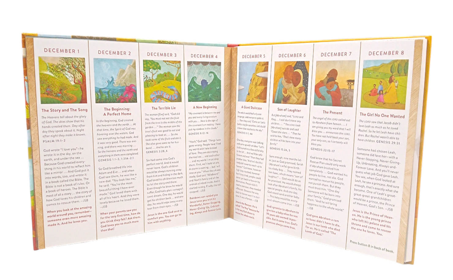 An interactive Advent experience featuring story, sound, and song for the whole family to enjoy this holiday season! This engaging journey to Christmas is brought to you by beloved?New York Times?bestselling author Sally Lloyd-Jones and based on the bestselling?The?Jesus Storybook Bible, with over 6 million copies sold.