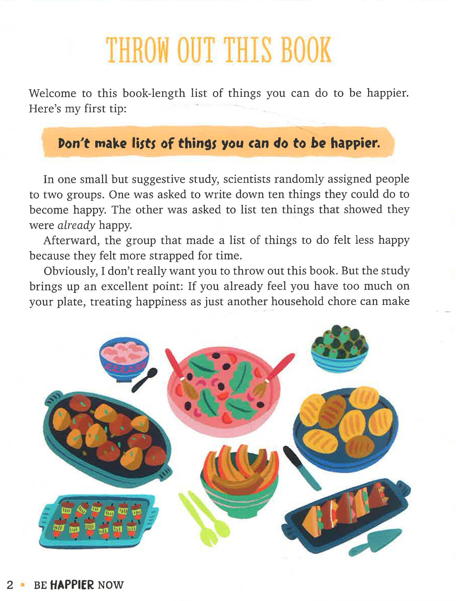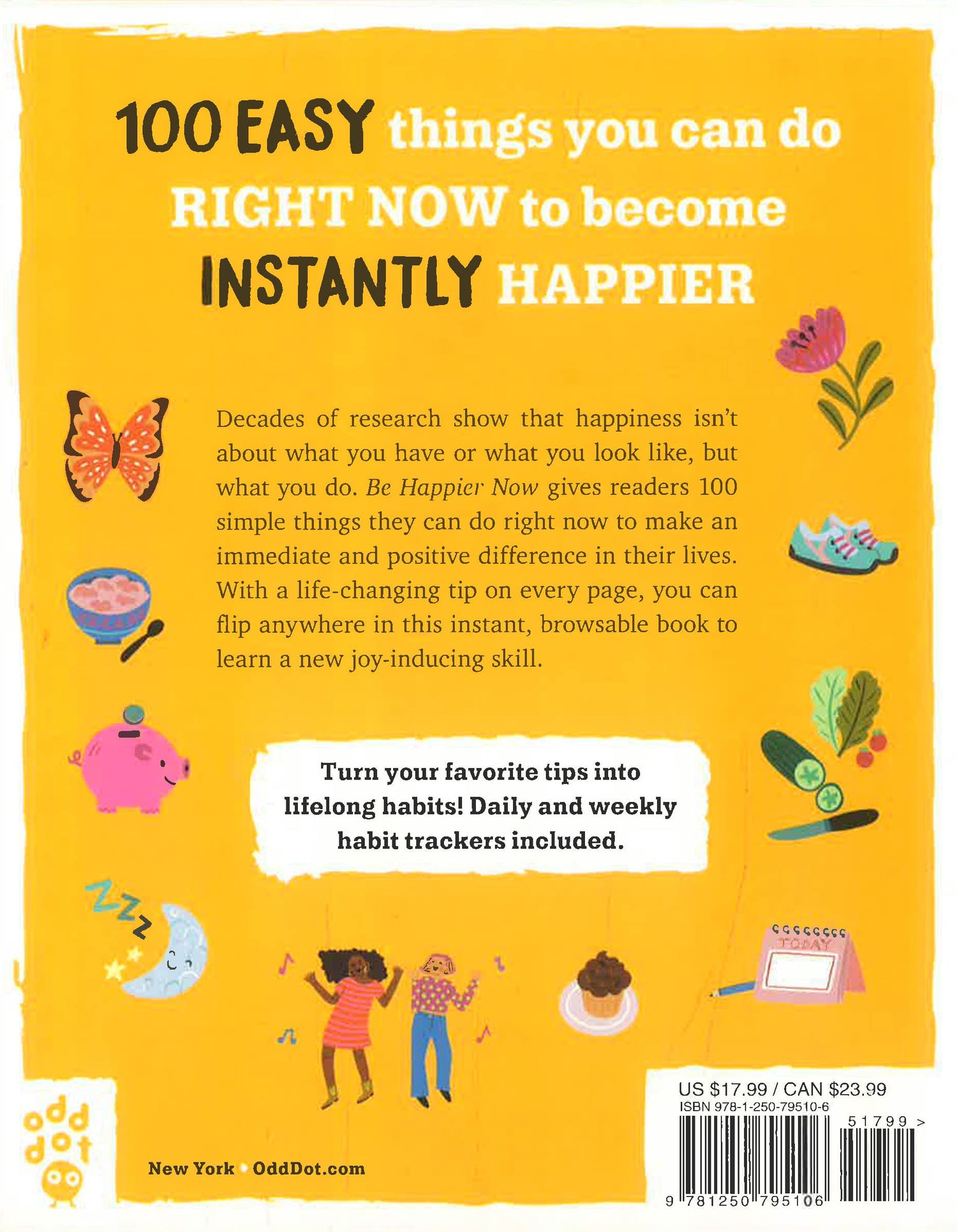Be Happier Now gives readers one hundred simple things they can do right now to make an immediate and positive difference in their lives. With a life-changing tip on every page, flip anywhere in this browsable book to learn a healthy new skill. Plus, built-in habit trackers on the inside of the jacket help you turn your favorite tips into lifelong habits. Backed by the latest scientific research and vetted by a professional psychologist, Jacob Sager Weinstein provides a holistic program to creating a happy life by focusing on five key aspects: - Happy Mind, - Happy Body, - Happy Heart, - Happy Wallet, - And Happy Soul. A Be Better Book: Helping readers live happier, smarter, healthier, and richer lives right now.