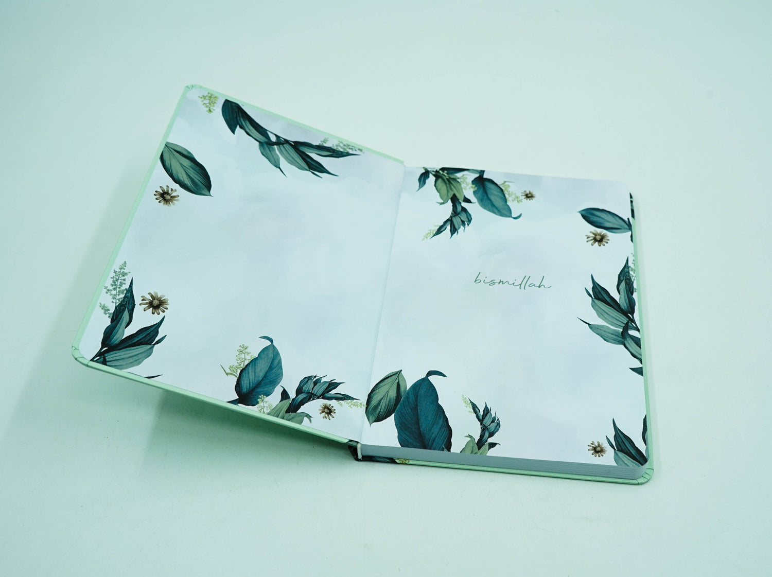 “The value of an idea lies in the using of it.” – Thomas Edison. Express your raw ideas in this thread-bound Dua Gifts Luxe A5 Notebook. With hardcover binding, it protects your important notes wherever you go. Featuring lined pages for half; and blank pages for the other half-- it’s truly the best of both worlds! How is it Special? The Dua Gifts Luxe A5 Notebook comes with a contemporary design that blends right into your home, office, or personal desk. Let a sense of calm wash over you with the soothing pastel floral designs – a visual therapy for any time of the day. Each Dua Gifts Luxe A5 Notebook “gifts” you with a powerful message that calls upon your inner peace, ease and gratitude. The message on your Dua Gifts Luxe A5 Notebook is often short and sweet, yet beautiful to hold on to. Write down, draw or doodle your ideas in the Dua Gifts Luxe A5 Notebook. Let it be a special place of passion, drive and creativity. Next? Take action and hustle on. :) Perfect as a gift for yourself or loved ones, it’s a functional tool to kick-start your goals. How to Care for It? We make our Dua Gifts Luxe A5 Notebook with extra love and care. As it arrives in your hands, we hope you cherish it like we do. Use it often and keep it close – so that you’re always reminded of your goals! Also, we highly recommend to keep it somewhere safe…in case you’re writing any super secret stuff in there. Material: 80gsm simile paper, hard cover, hot stamping front cover, gold foil lettering cover. No. of Pages: 96 lined pages and 96 blank pages