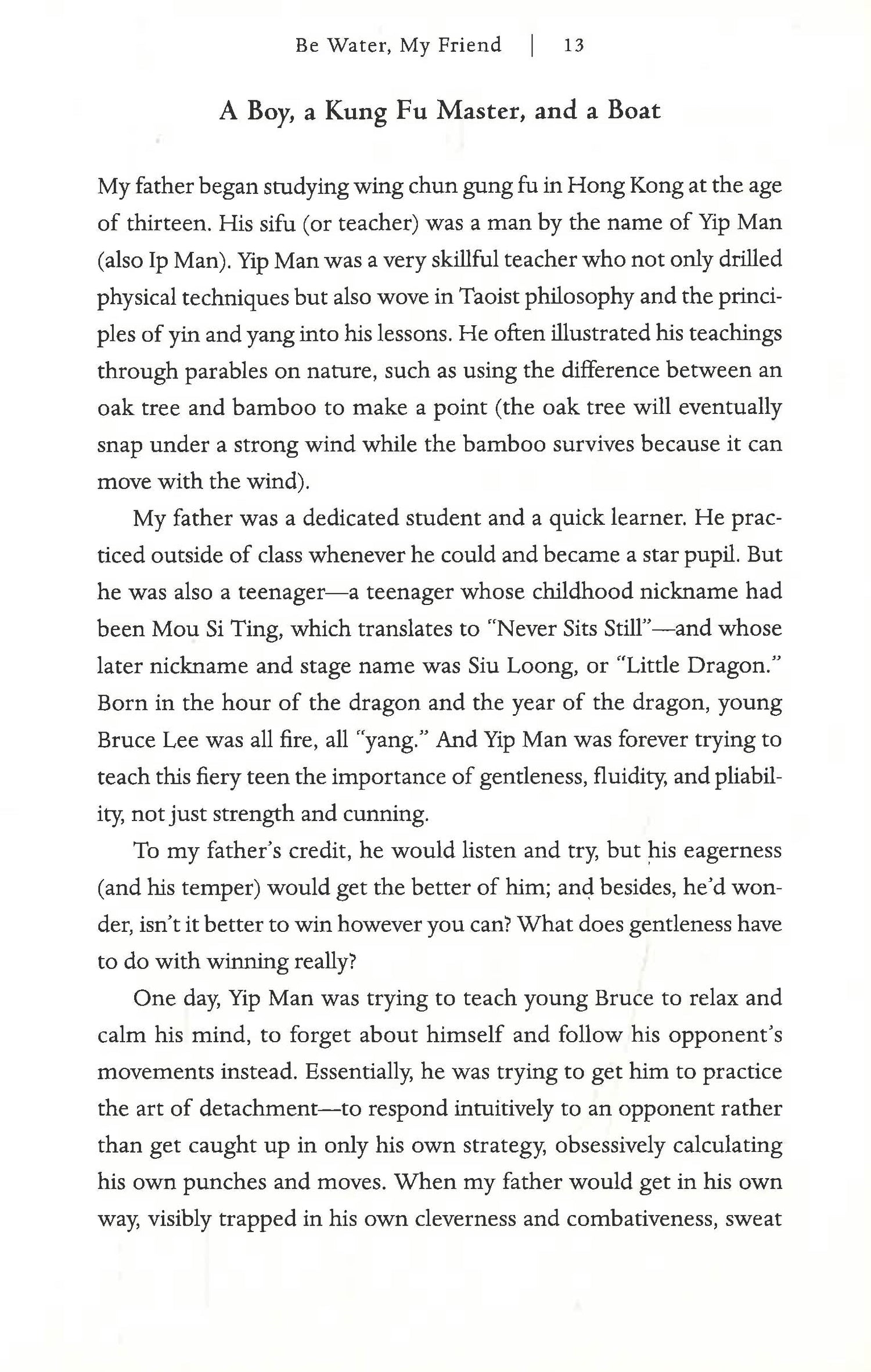 "Empty your mind; be formless, like water." The spiritual teachings of Bruce Lee, by his daughter Shannon Lee, producer of the Warrior series