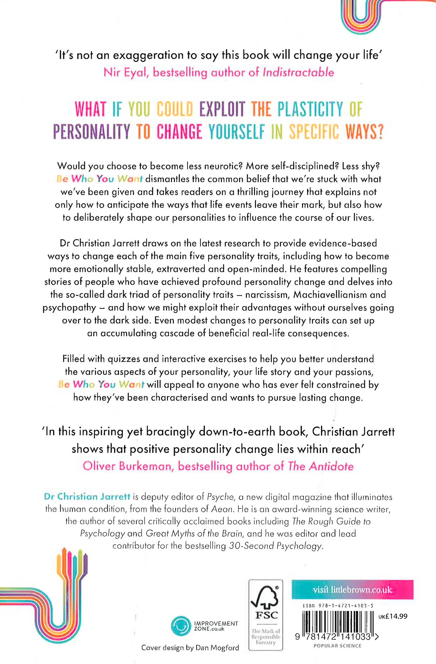 There are enough plums, cherries, raisins and sultanas in this delightful cake to inspire, surprise, motivate and enthuse anyone. Warmly recommended' - Stephen FryToday, more than ever, we are aware of the power of personality. Are we introverts, extroverts, neurotic, open-minded? Psychology has always taught that there are personality types, some advantageous, some often seen as less so, and the common perception is that we're stuck with what we're given. The introvert will never break out of their shell, the narcissist will be forever trapped gazing into the mirror (or endlessly tweeting about perceived attacks on their brilliance).Be Who You Want argues that contrary to the old adage, not only can the leopard change his spots, he can swap them for stripes, and that he can do so to his own advantage. In psychological terms, although our initial personality type is moulded by a combination of genetic influences and early experiences, it is not fixed. It's malleable, voluntary even. This book will tell the story of how our personalities are formed and gives us the tools to shape them in the ways which we desire and which will benefit us most. Drawing on the latest psychological theories and methods, interviews with leading experts, as well as personal anecdote, Christian Jarrett shows us that we can shape ourselves in ways that make our lives better.The book provides evidence-based ways to change each of the main five personality traits, including how to become more emotionally stable, extrovert and open-minded. It also delves into the upsides of the so-called Dark Triad of personality traits - narcissism, Machiavellianism, and psychopathy - and how we might exploit their advantages without ourselves going over to the dark side.